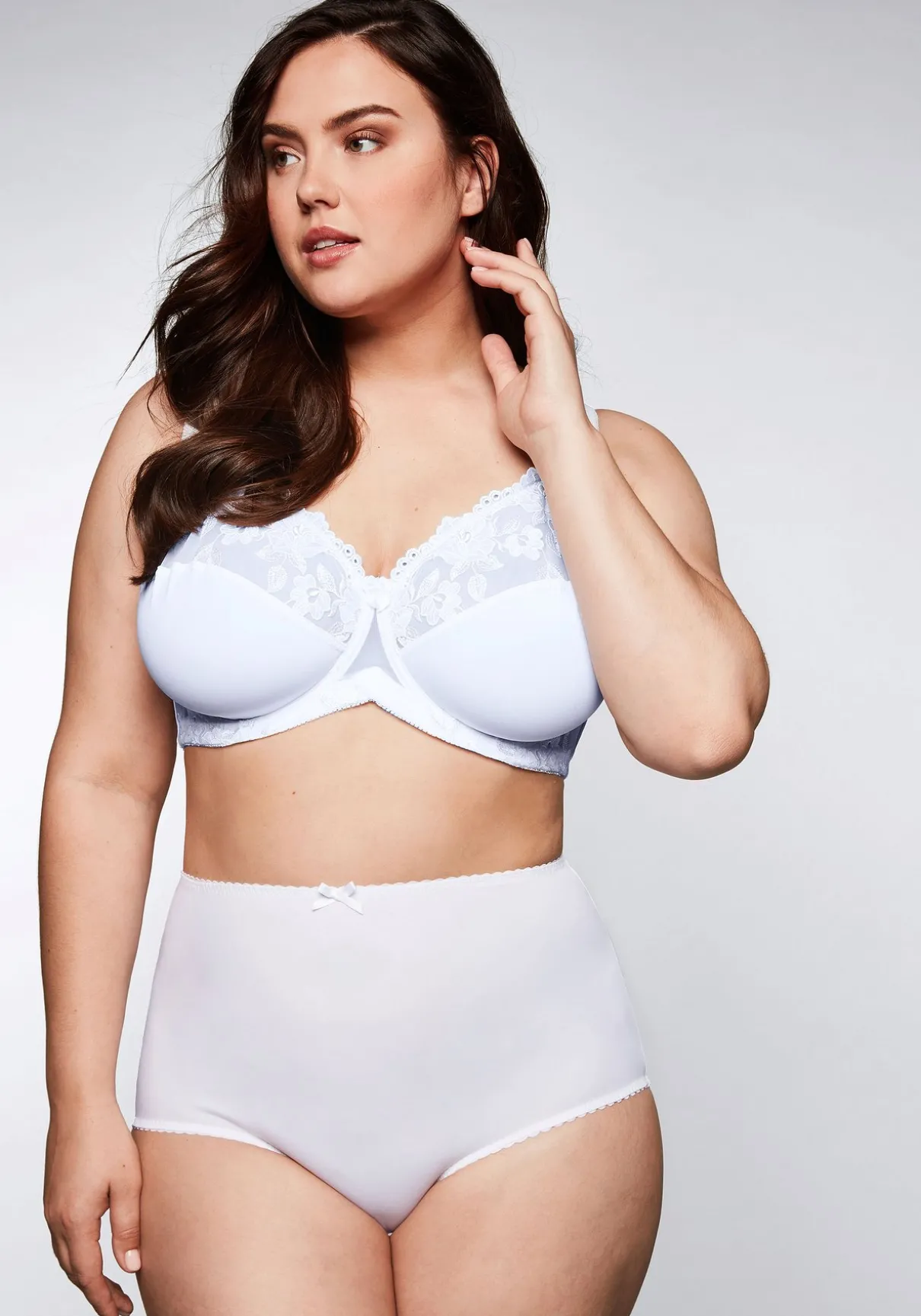 Dieser Bügel-BH wird dank der besonderen Kombination aus verschiedenen, leicht transparenten Spitzen zum verspielten Hingucker. Seitenstützen und breite, leicht gefütterte Träger sorgen dabei für zuverlässigen Halt und optimalen Tragekomfort. Rückenverschluss und Träger sind verstellbar.
