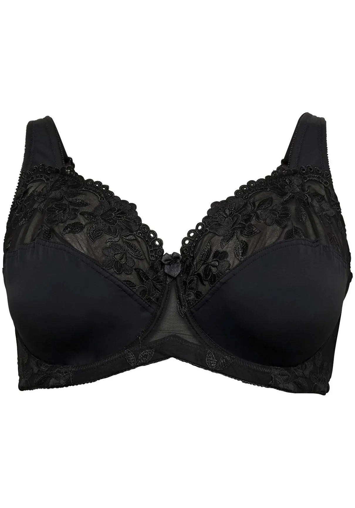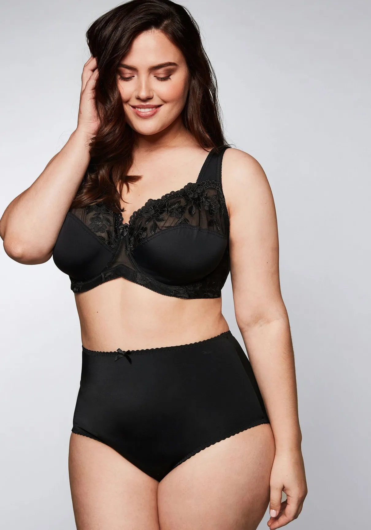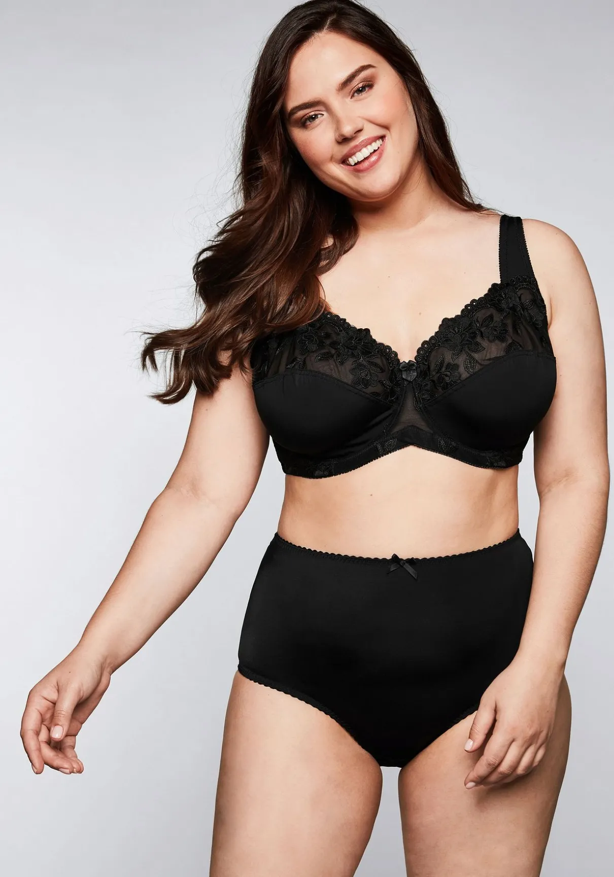 Dieser Bügel-BH wird dank der besonderen Kombination aus verschiedenen, leicht transparenten Spitzen zum verspielten Hingucker. Seitenstützen und breite, leicht gefütterte Träger sorgen dabei für zuverlässigen Halt und optimalen Tragekomfort. Rückenverschluss und Träger sind verstellbar.