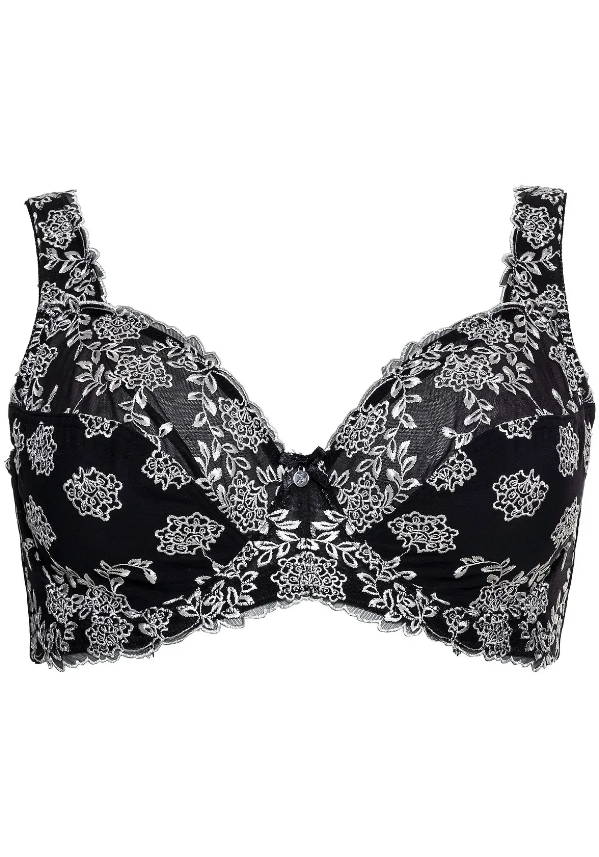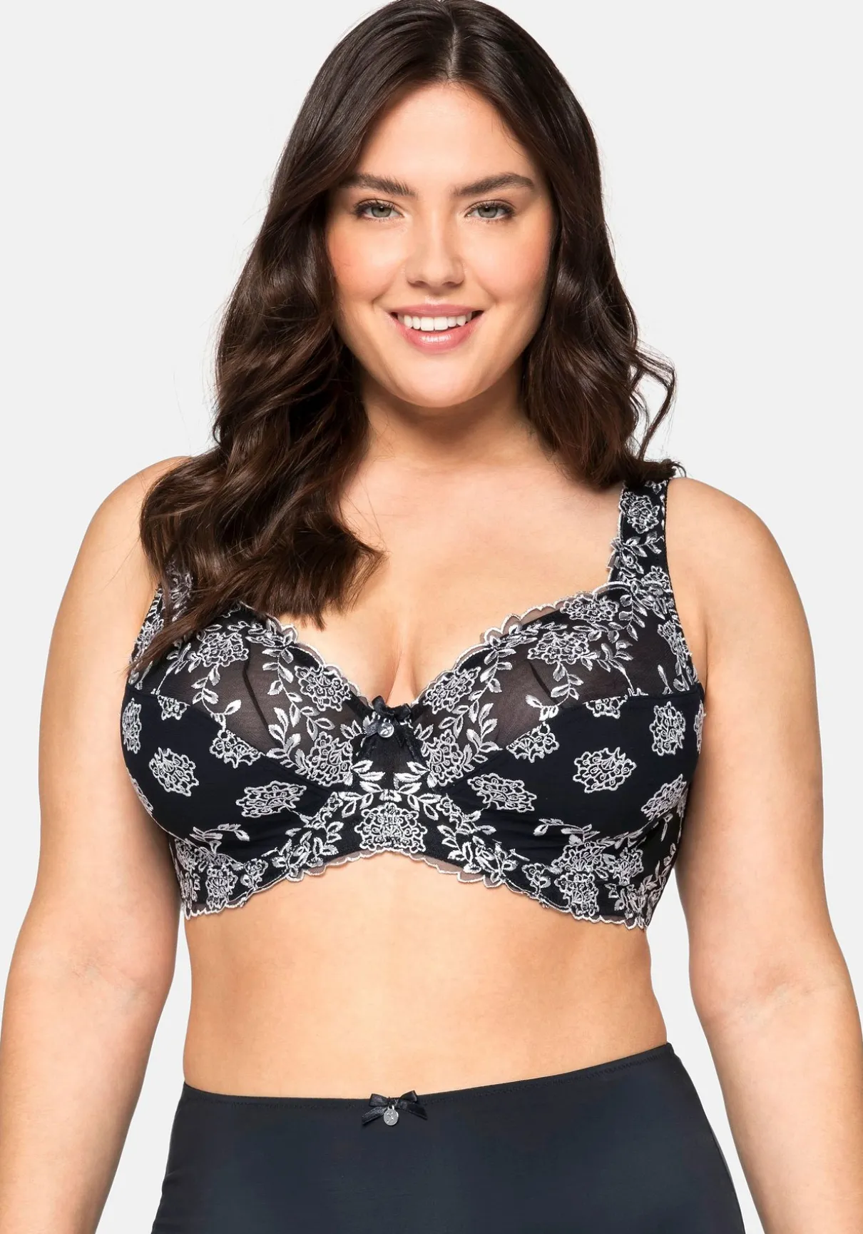 Bügel-BH mit zarter, dekorativer Stickereispitze. Die breiten, leicht gefütterten Träger sitzen angenehm und können in der Länge verstellt werden.