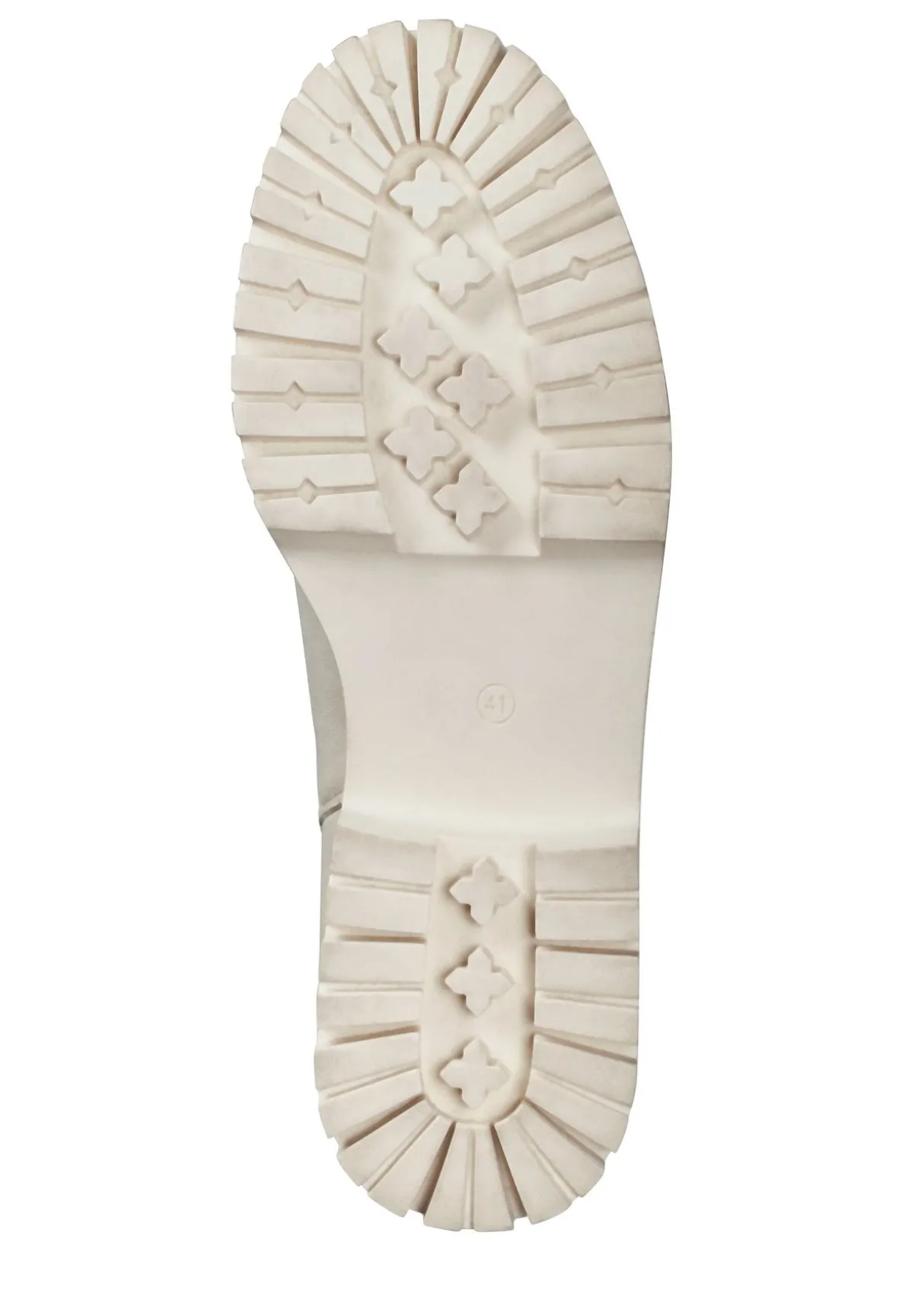 Die Stiefelette ist aus Velourslederimitat gearbeitet.