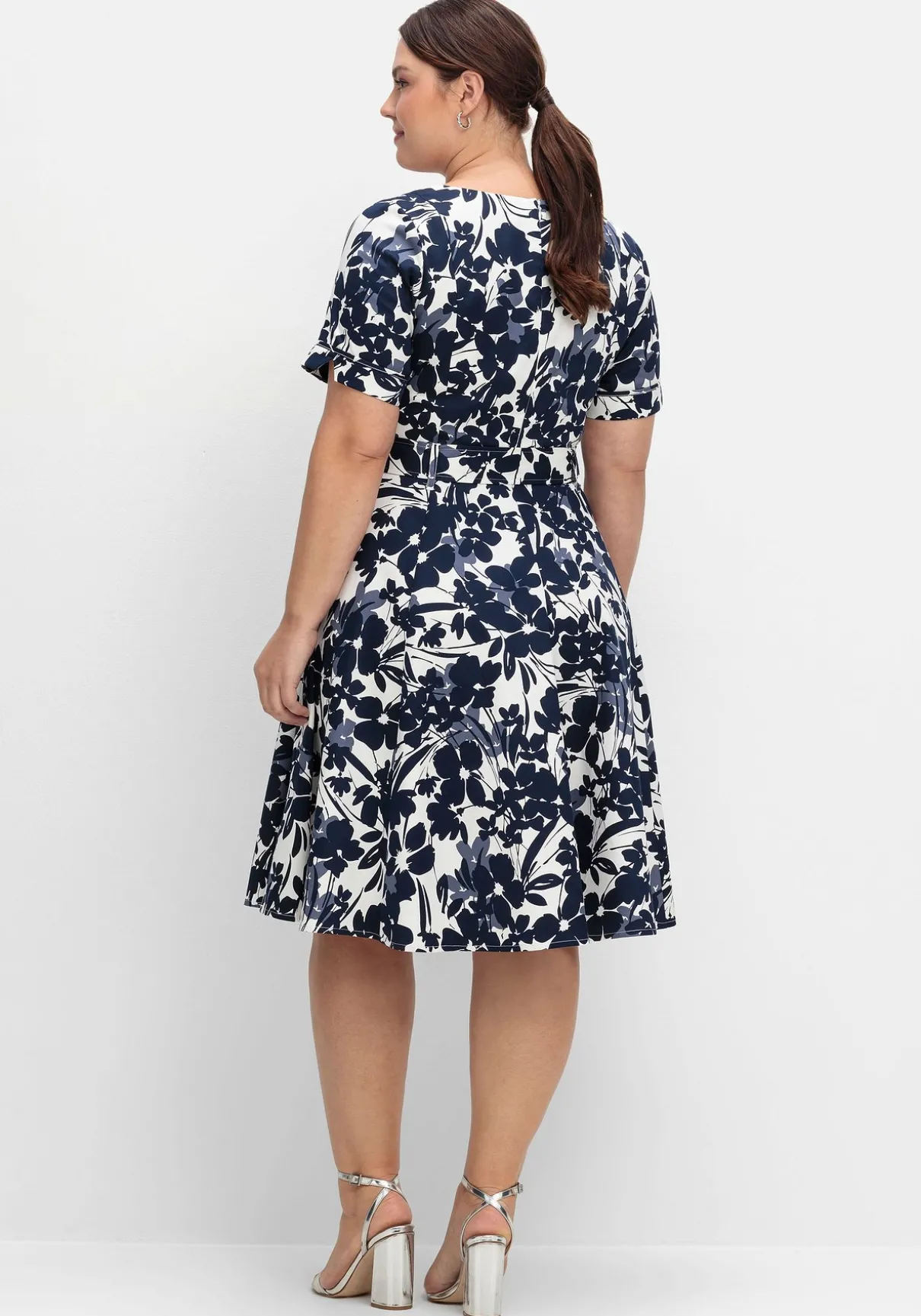 Cocktailkleid mit Blumenprint und Stoffgürtel