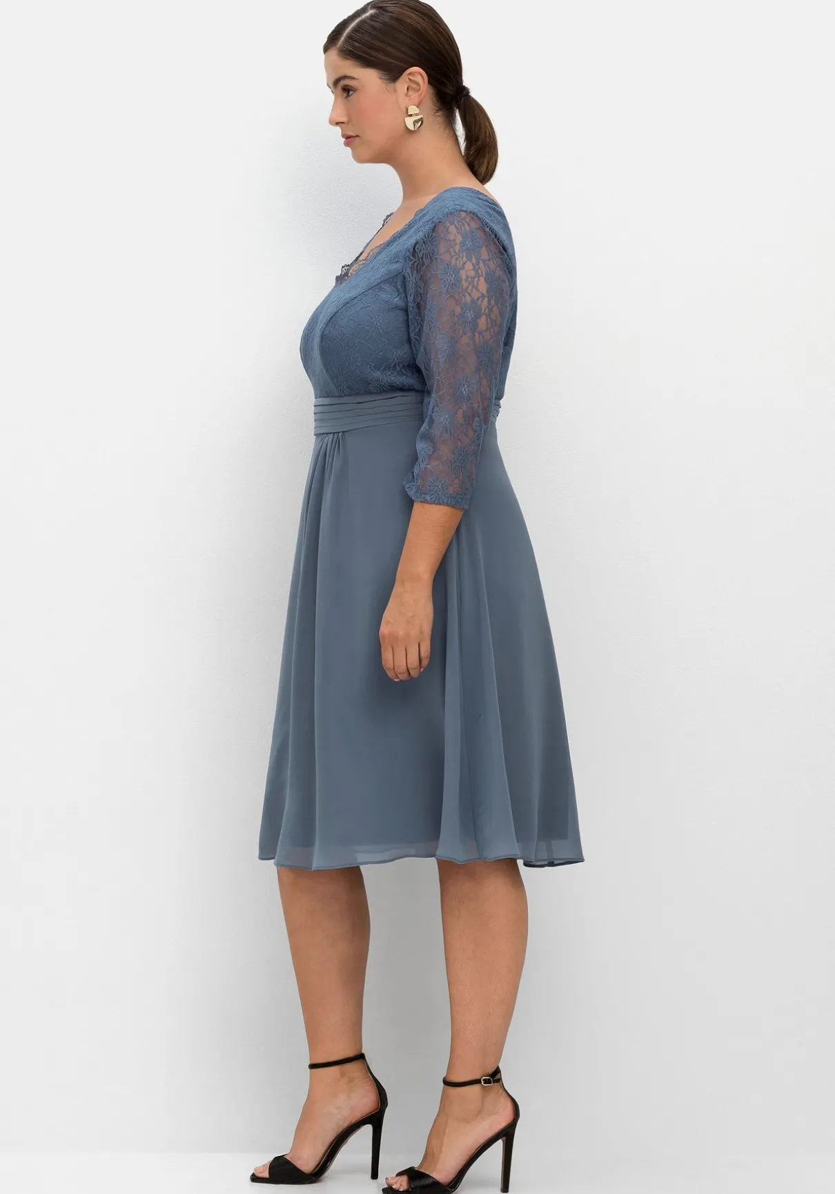 Zarte Spitze trifft auf fließenden Chiffon und verleiht dem Cocktailkleid so festliche Eleganz.
