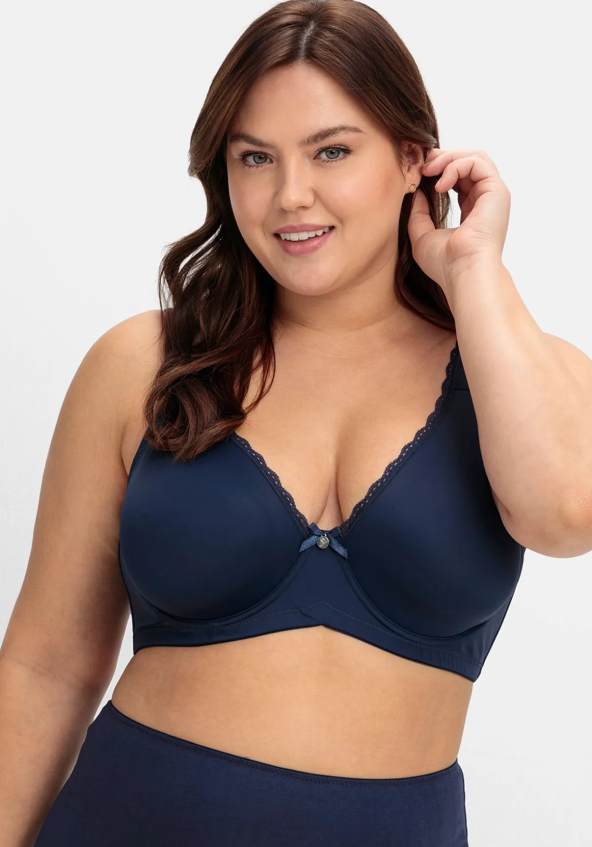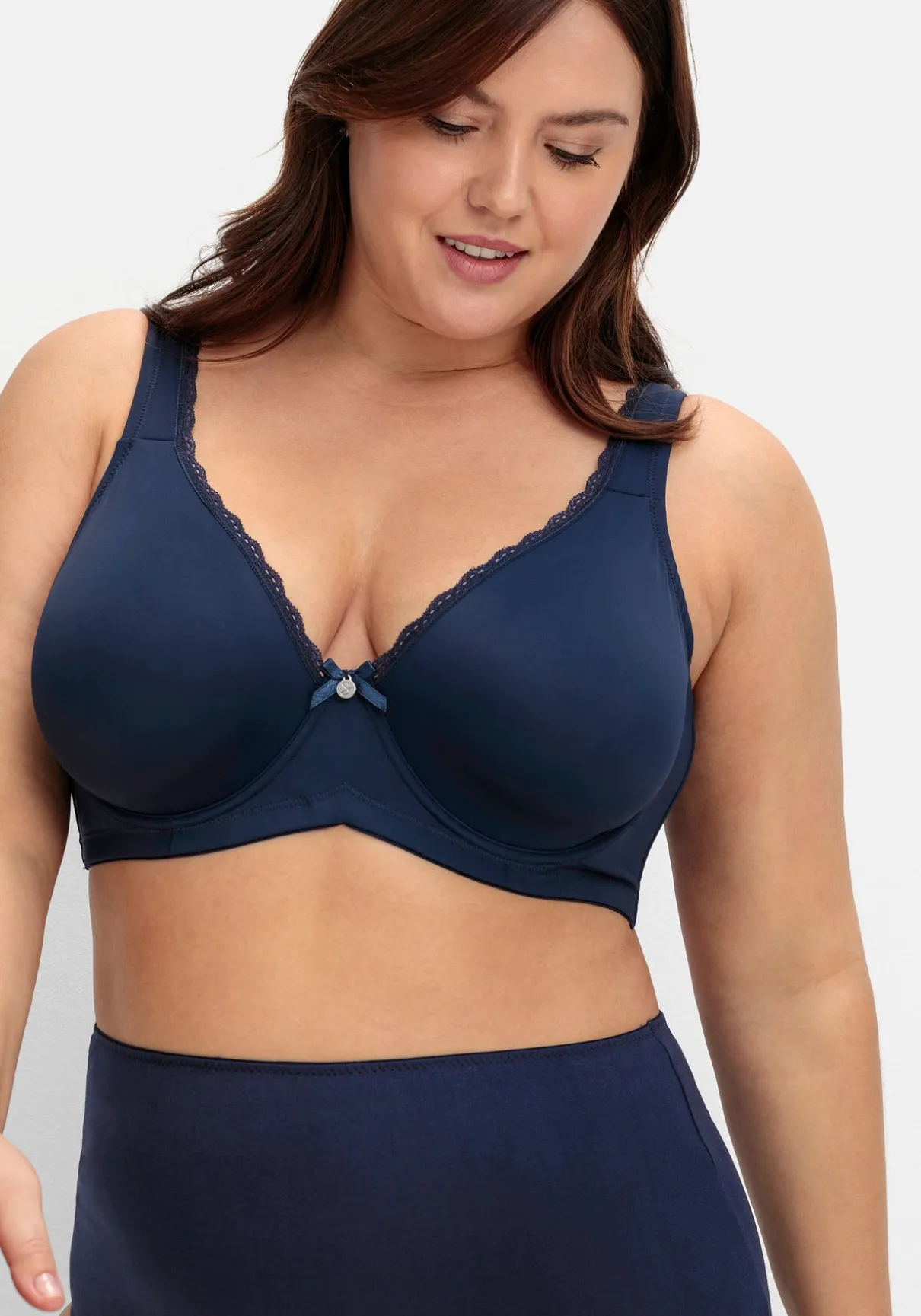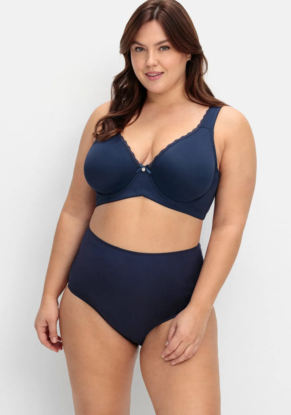 Bügel-BH im Doppelpack. Die nahtlos vorgeformten Cups schmiegen sich der Brust perfekt an und modellieren eine wunderschöne Brustform. Die feine Spitzenborte am Ausschnitt macht den schlichten Style feminin. Dazu überzeugt der BH mit hohem Tragekomfort: Die Cups decken die Brust komplett ab, der hohe Mittelsteg sowie die seitlichen Stützen geben sehr guten Halt. Auch die breiten, leicht gefütterten Träger schneiden nicht ein.