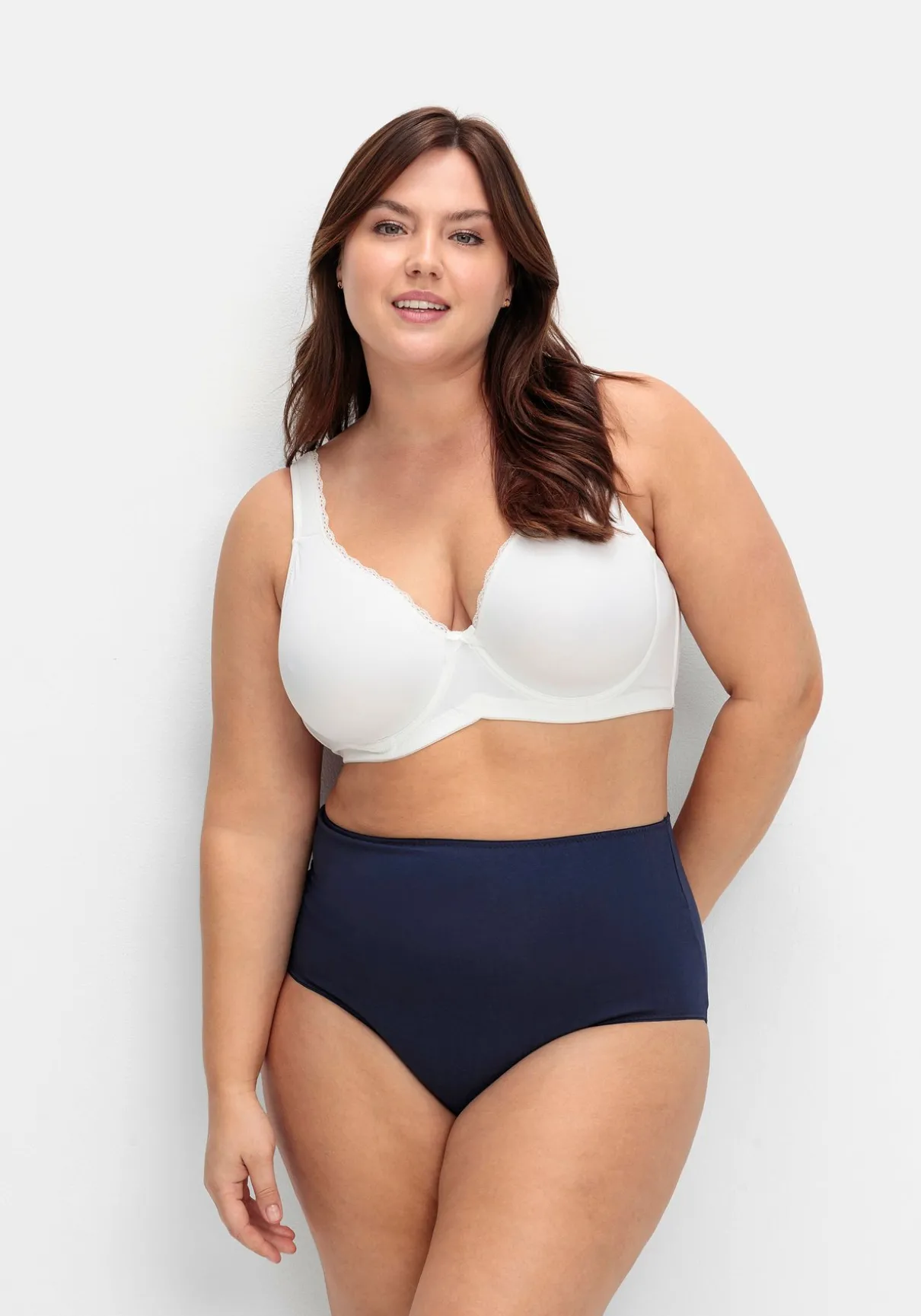 In sehr bequemer, brustabdeckender Schnittform mit stützendem Bügel. Die verstellbaren Träger und Rückenverschluss sorgen für Passgenauigkeit.