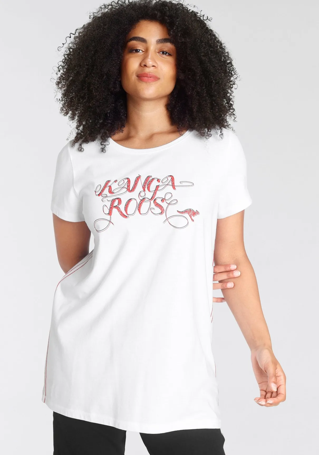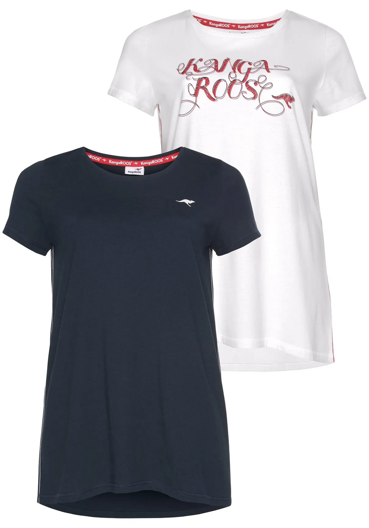 Klassisches Damen-Longshirt der Marke KangaROOS. Mit einem Po-bedeckenden und figurumspielenden Schnitt. Die Ärmel sind kurz. Kombinierbar für sportliche Outfits. Im 2er-Pack erhältlich.