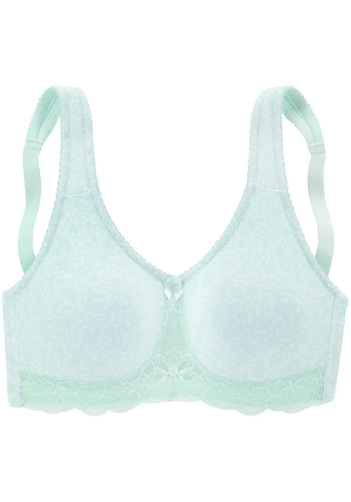 Schöner Entlastungs-BH ohne Bügel aus einer Mix & Match-Serie von NUANCE aus softer Baumwolle mit hübscher Jacquardspitze. Alles miteinander kombinierbar. Extra breite, entlastende Träger für einen hohen Tragekomfort. Flache Jacquard – spitze unterm Cup (ohne Wattierung) und in der vorderen Mitte. Hoch geschnittenes Rückenteil für einen guten Halt auch ohne Bügel. Träger und Rückenverschluss verstellbar. Aus 85% Baumwolle, 10% Polyamid, 5% Elasthan. BHs sind nicht trocknergeeignet, da die Versteller und Ringe durch die Hitze beschädigt werden und brechen.