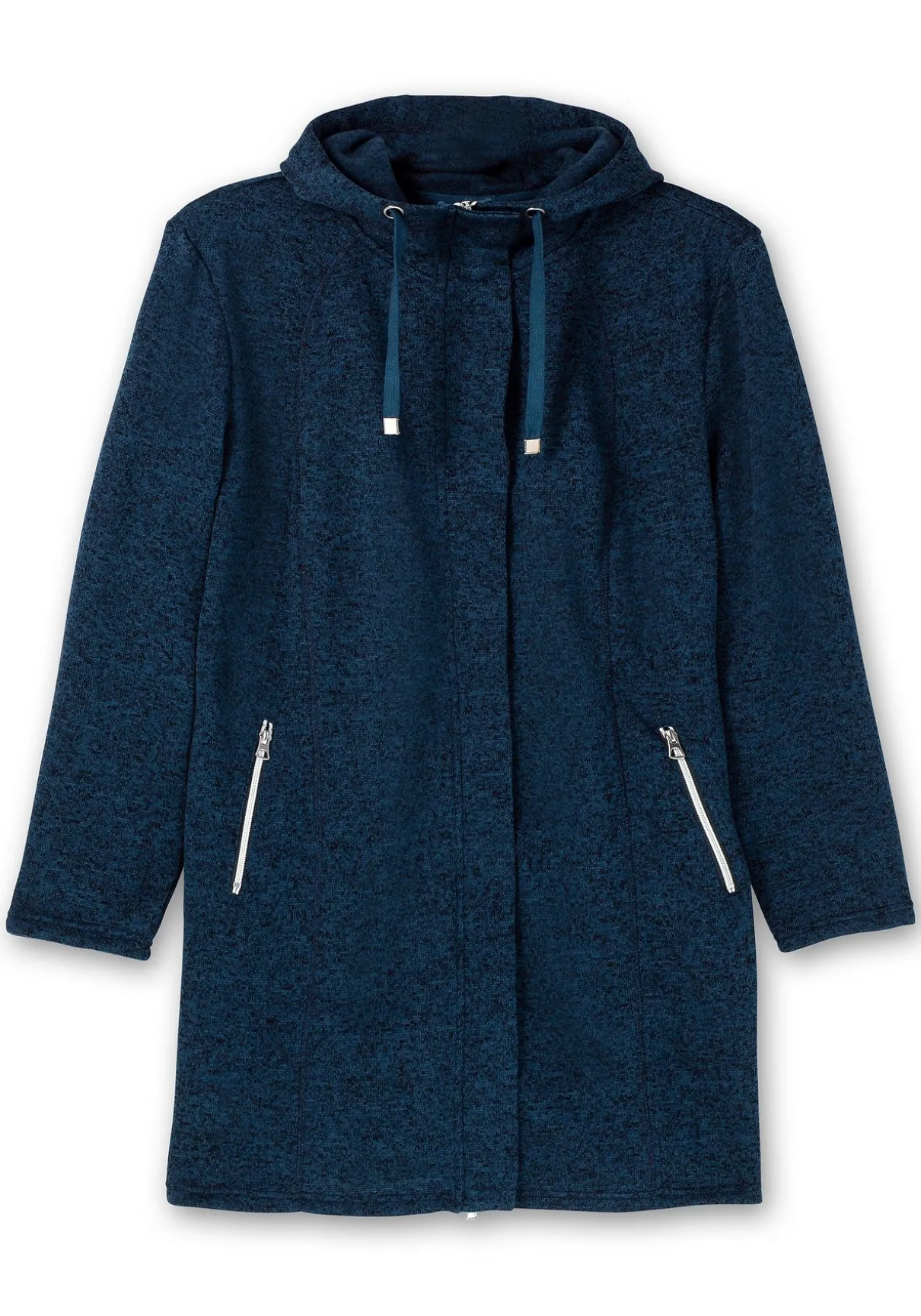 Lange Fleecejacke. Die sportive Jacke zeigt sich mit Kapuze und Tunnelzug, zu schließen ist sie mit dem verdeckten Reißverschluss. Auch die seitlich eingesetzten Taschen sind mit Reißverschlüssen gearbeitet. Farblich abgesetzte Teilungsnähte strecken optisch die Figur.