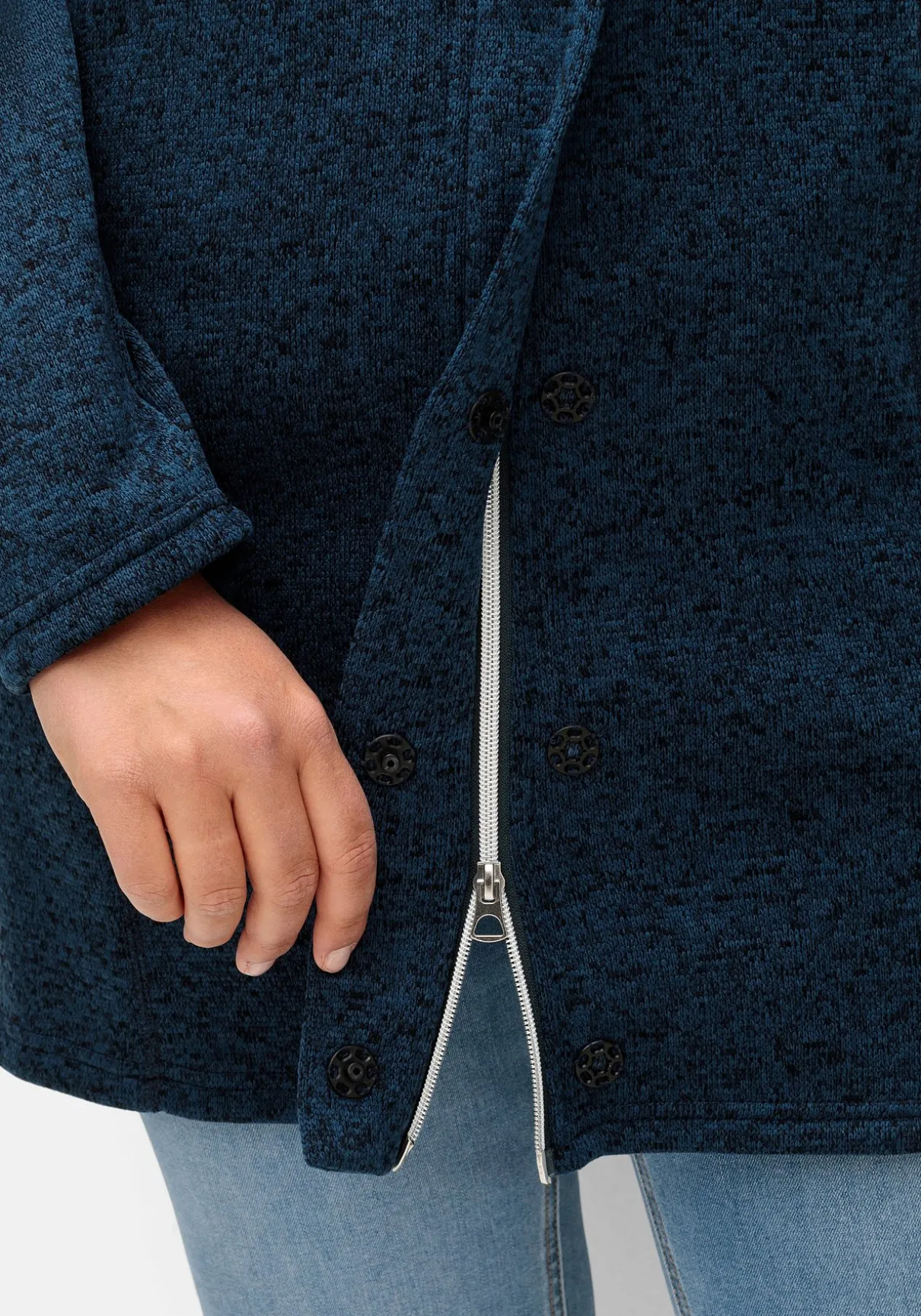 Die weiche Fleecequalität trägt sich sehr kuschelig und wärmt schön. Durch die feine Melange-Optik wird die Oberfläche lebendig.