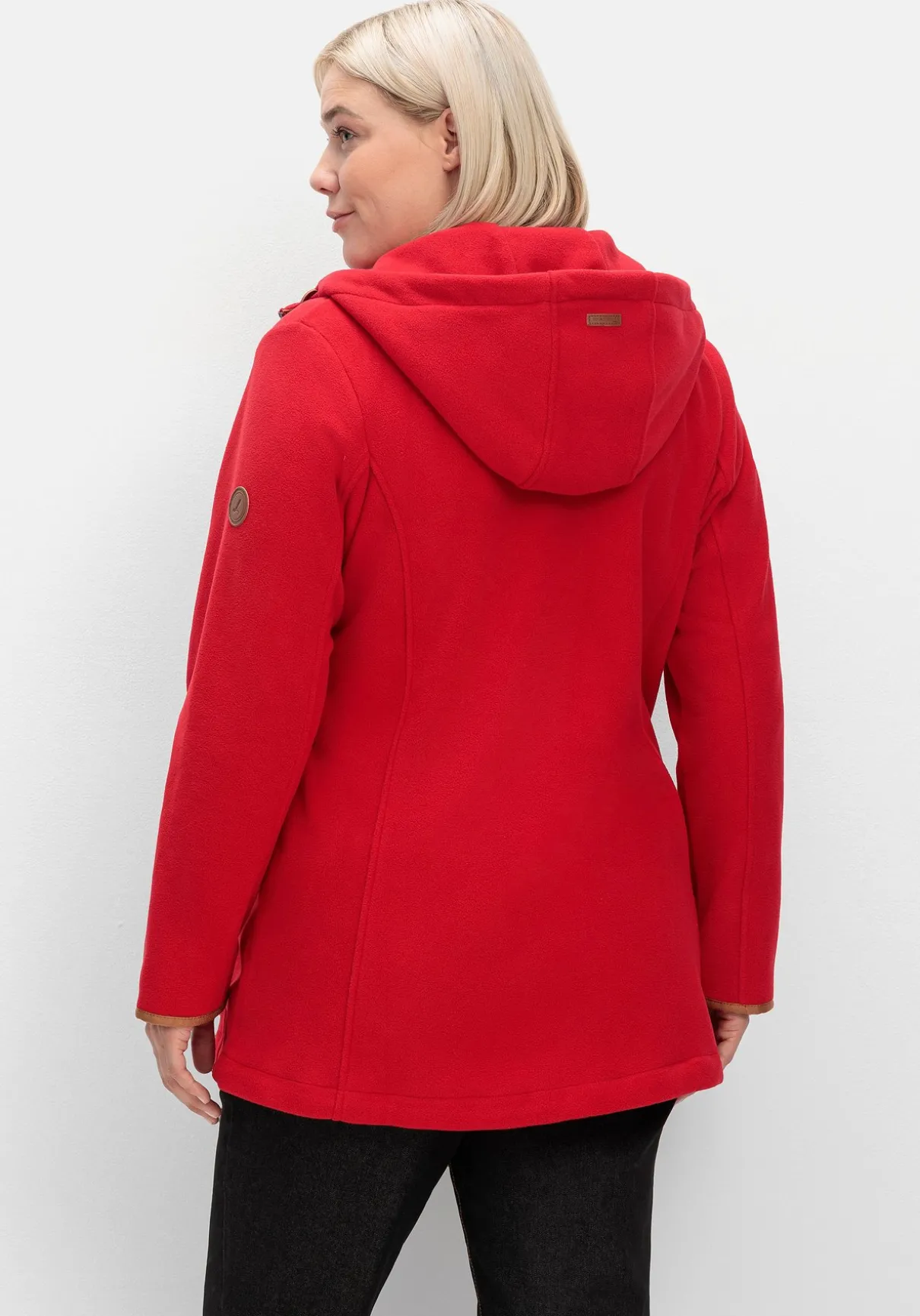 Fleecejacke mit Kontrastdetails. Die Jacke verfügt über eine Kapuze mit dekorativem Kordelzug sowie einen verdeckten Reißverschluss mit einer innen kontrastfarbig verzierten Druckknopfleiste. Praktische Reißverschlusstaschen halten die Hände schön warm, formgebende Nähte garantieren eine optimale Passform und unterstreichen den sportiven Look.