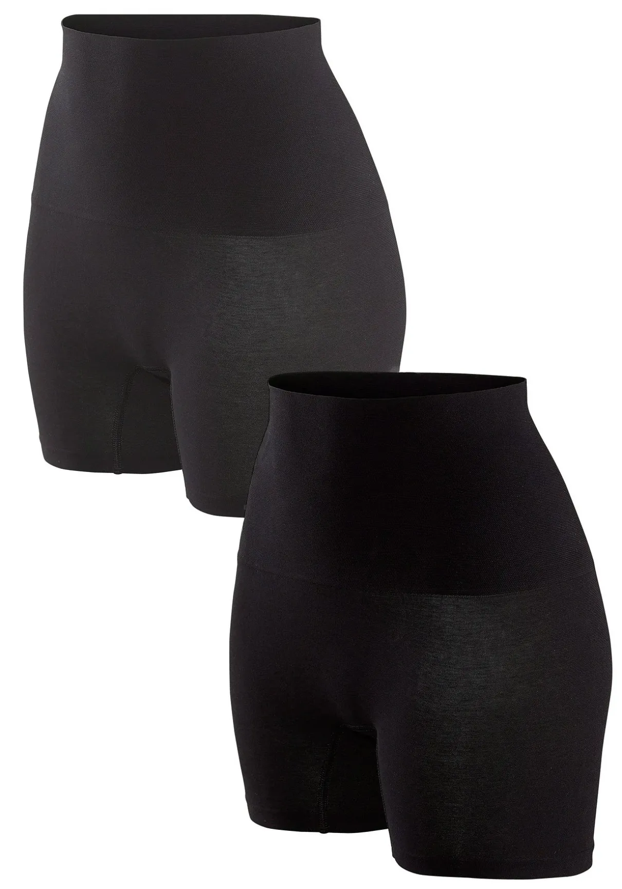 Bodyforming-Pantys im 2er-Pack. Seamless, rundum nahtlos. Kaschiert perfekt die Bauchpartie. Shape wear. Shaping Unterwäsche. Shaping Unterhose. Shaping Slip. Shape Unterwäsche. Hochelastische Qualität aus 65% Baumwolle, 20% Elasthan, 15% Polyamid.