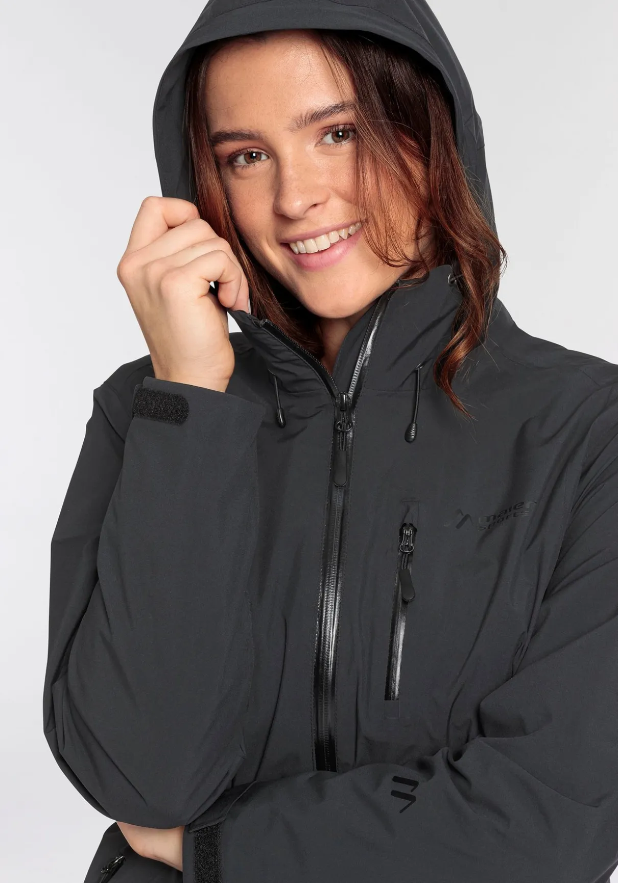 Mit der Funktionsjacke von Maier Sports kommen Sportlerinnen in Höchstform. Sie hat einen Reißverschluss mit Kinnschutz sowie eine Kapuze mit verstellbarem Gummizug. An den langen Ärmeln ist ein Klettverschluss. In der Brusttasche können kleine Dinge, die schnell parat sein sollen, gut verstaut werden. Abgerundet wird der Look mit einem Logoschriftzug. Die Funktionsjacke ist atmungsaktiv und winddicht, dadurch sorgt sie für ein trockenes Tragegefühl und unterstützt bei schweißtreibenden Aktivitäten in der Natur. Wenn sie mit einem Funktionsshirt getragen wird, kann flexibel auf das Wetter reagiert werden.
