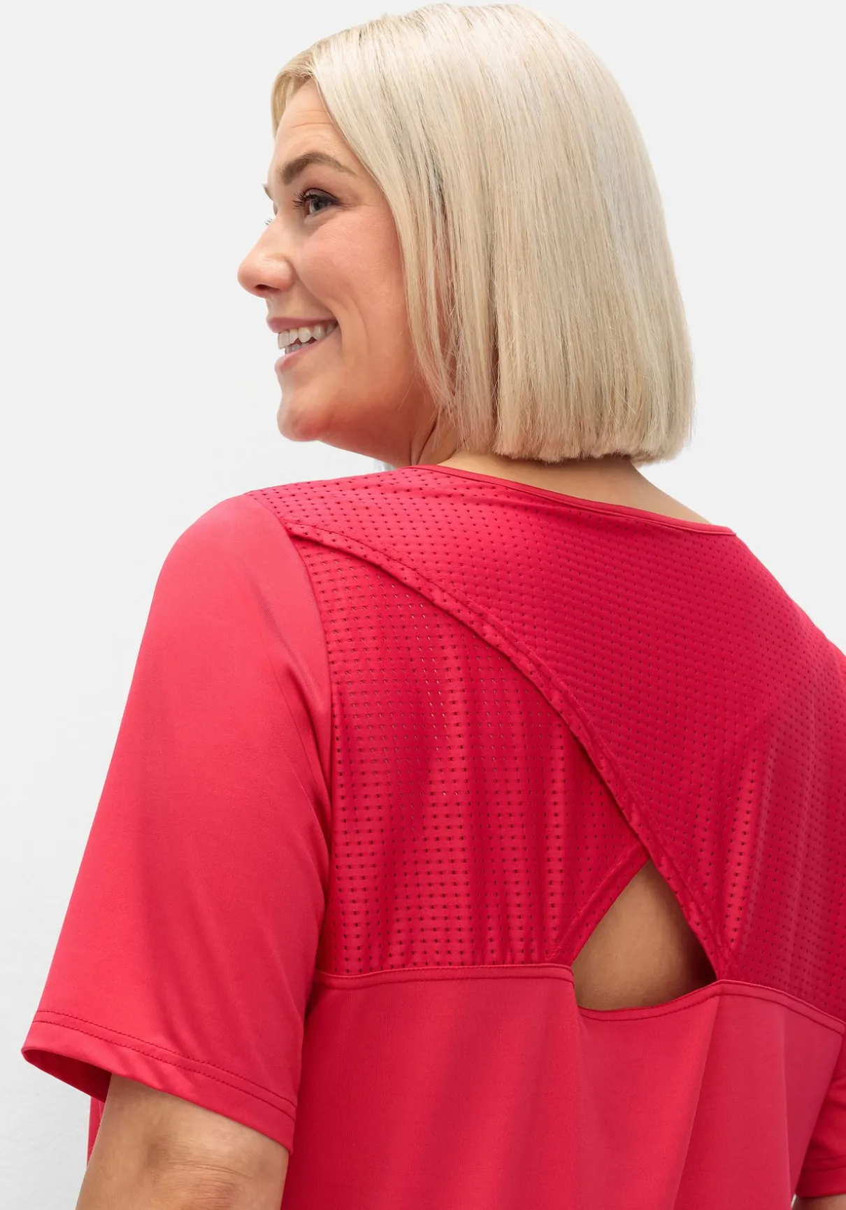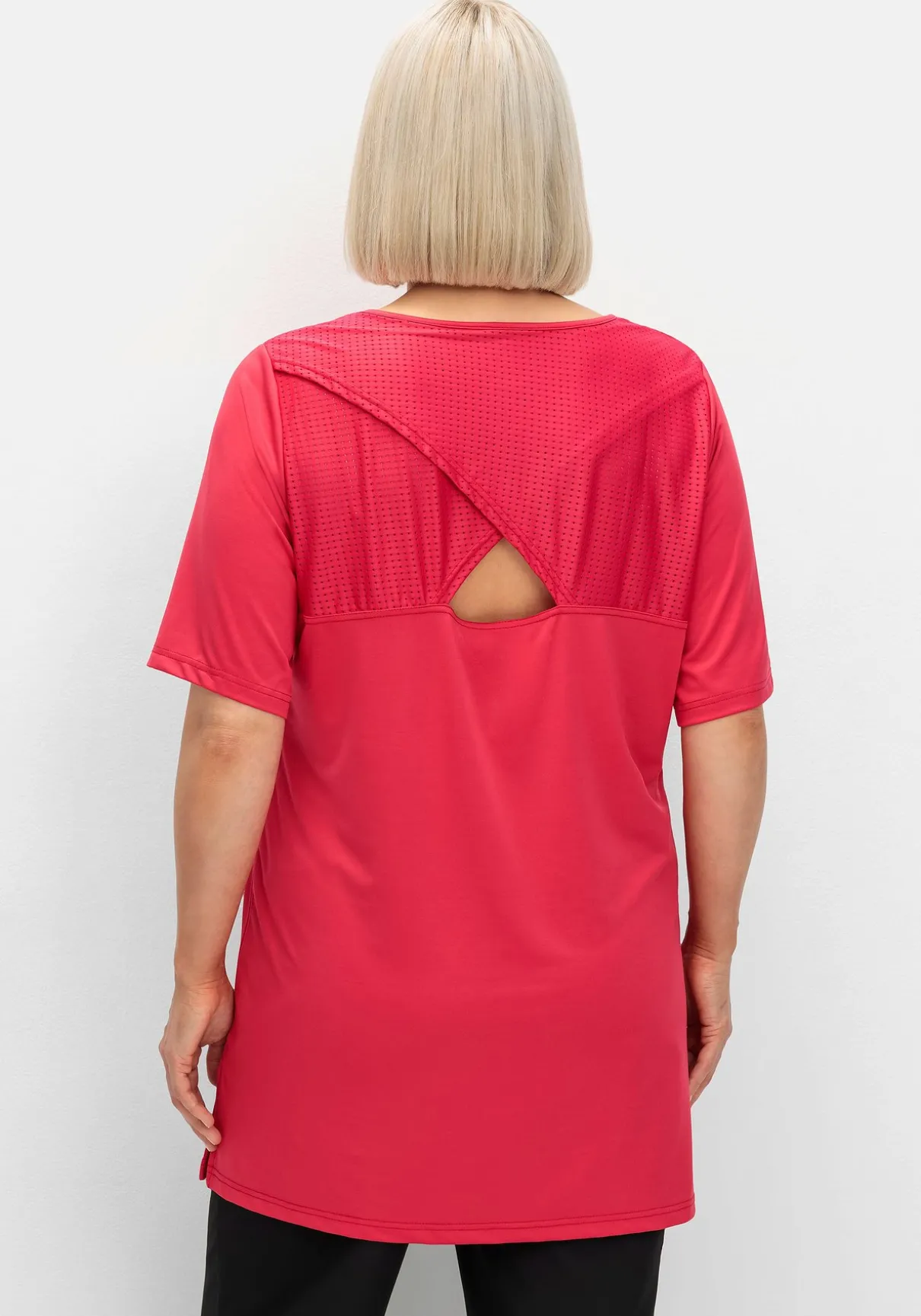 Funktionsshirt in Longform. Für den extravaganten Look sorgt die raffinierte Rückenlösung: Hier lassen Mesh-Netzeinsätze in Lagenoptik einen kleinen Cut-out entstehen.