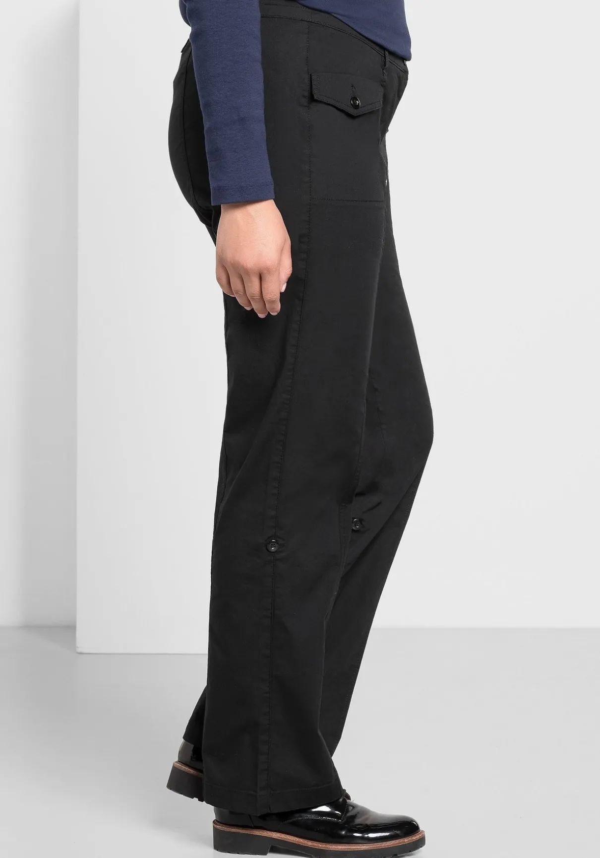 Hose zum Krempeln. Besonders praktisch: Die Hose kann lang getragen oder auf 3/4-Länge gekrempelt und mit Knopf und Riegel befestigt werden. Die markanten Teilungsnähte unterstreichen den sportiven Look. Vorn befinden sich zwei Eingrifftaschen mit Zierpatte.