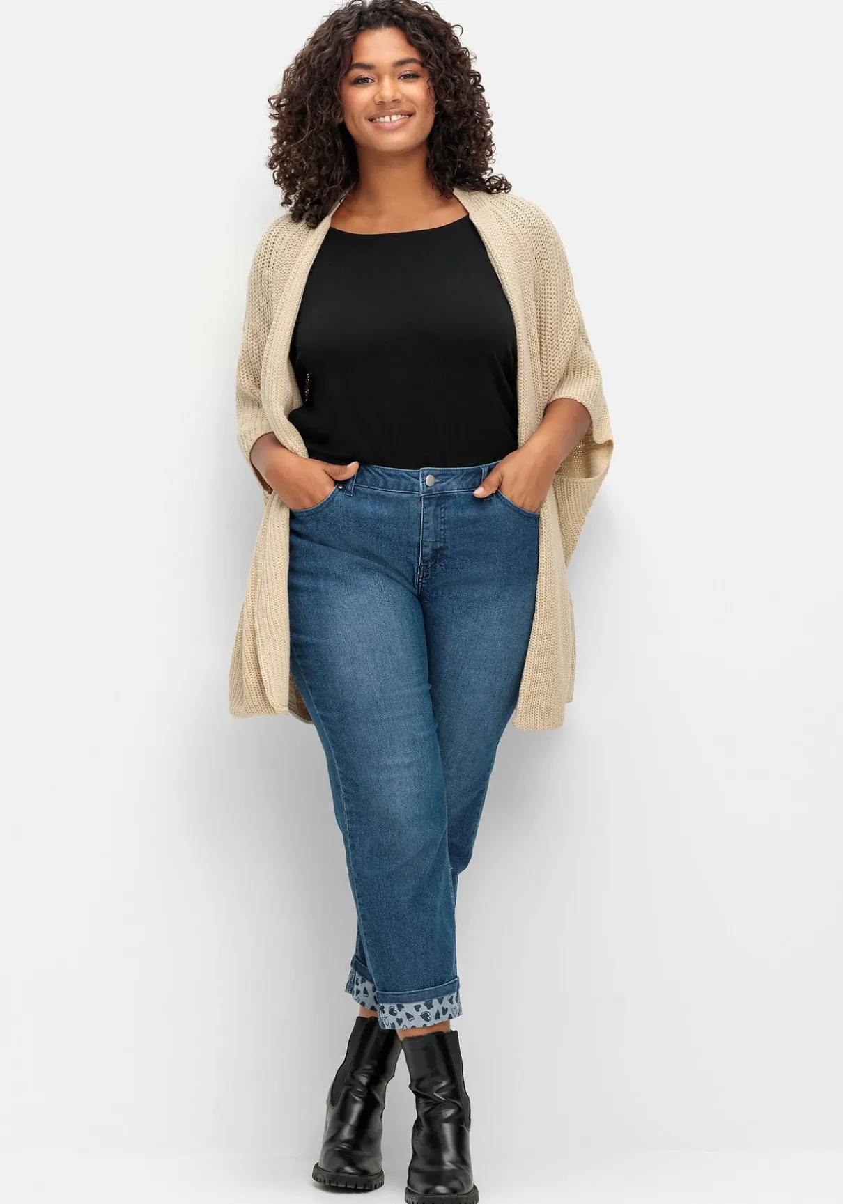 Die Jeans ist gerade geschnitten und endet in modischer 7/8-Länge.