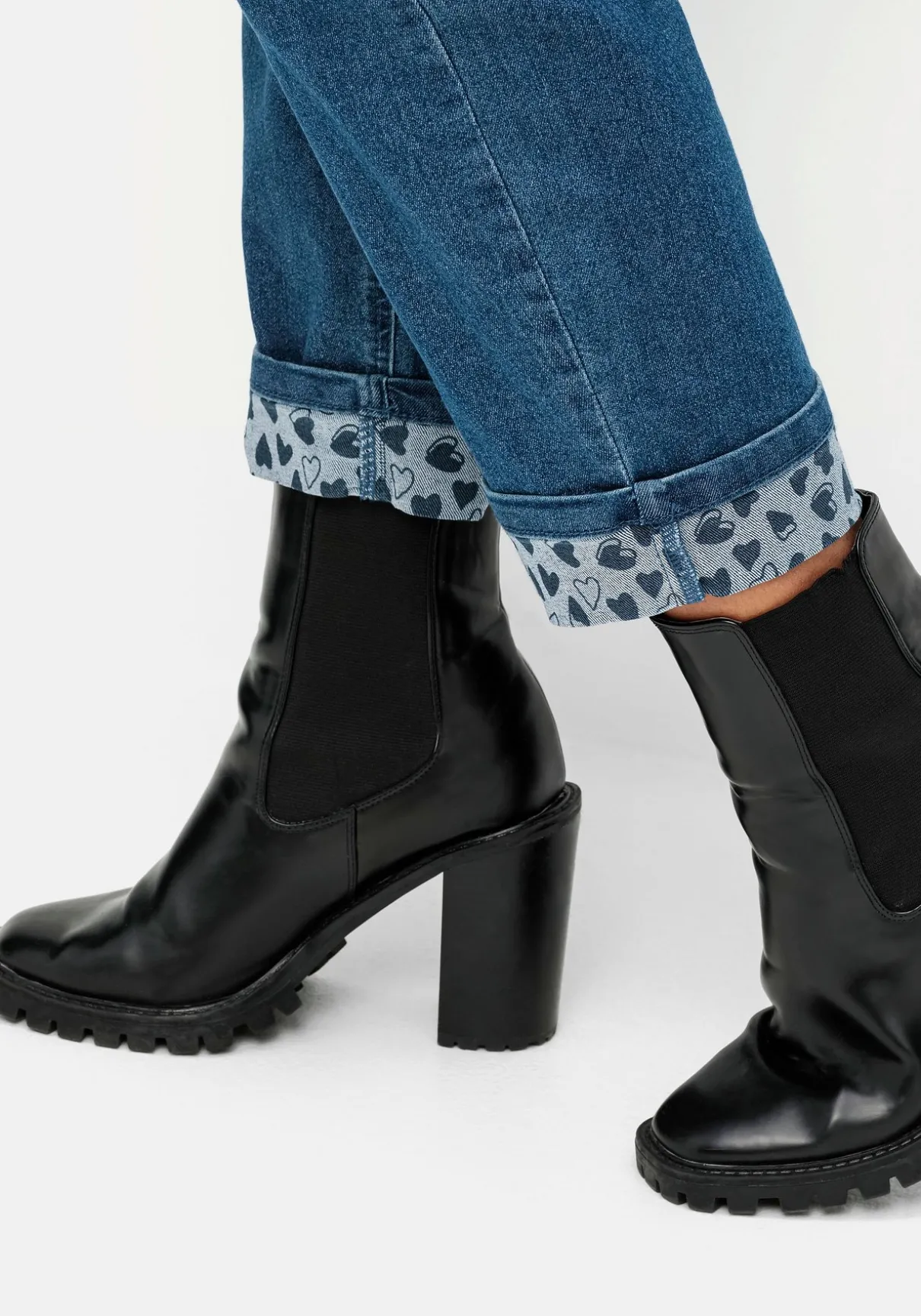 7/8-Jeans in gerader Beinform. Einsätze im Herzchenmuster an den Taschen und am Saum verleihen der Hose eine verspielte Optik. Der Formbund ist mit Gürtelschlaufen, Knopf- und Reißverschluss gearbeitet. Vorn und hinten besitzt die Jeans jeweils zwei Taschen, der Sattel hinten sorgt für einen optimalen Sitz.