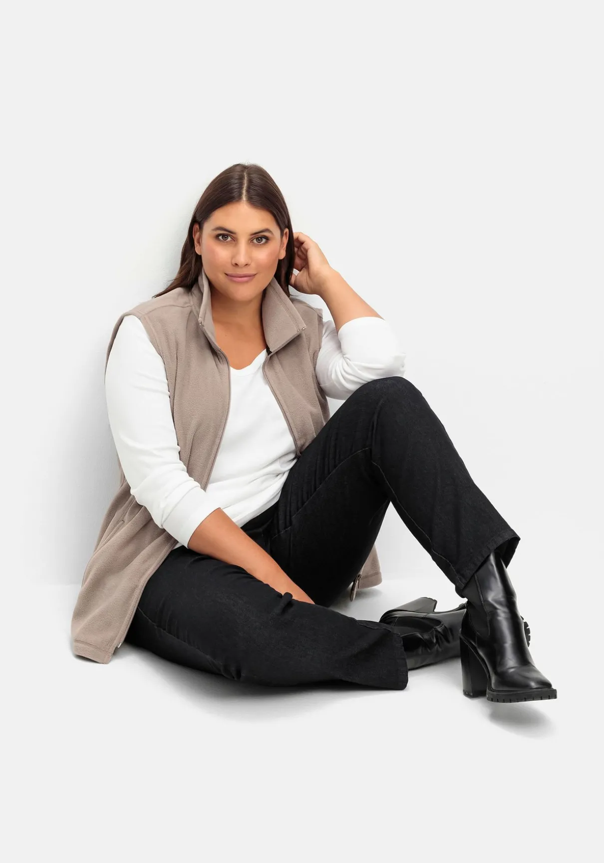 Die gerade geschnittene Jeans besitzt eine hohe Taille und sitzt weit und bequem am Bein – perfekt für die Figur mit schmalerer Taille, viel Po und kräftigeren Oberschenkeln.