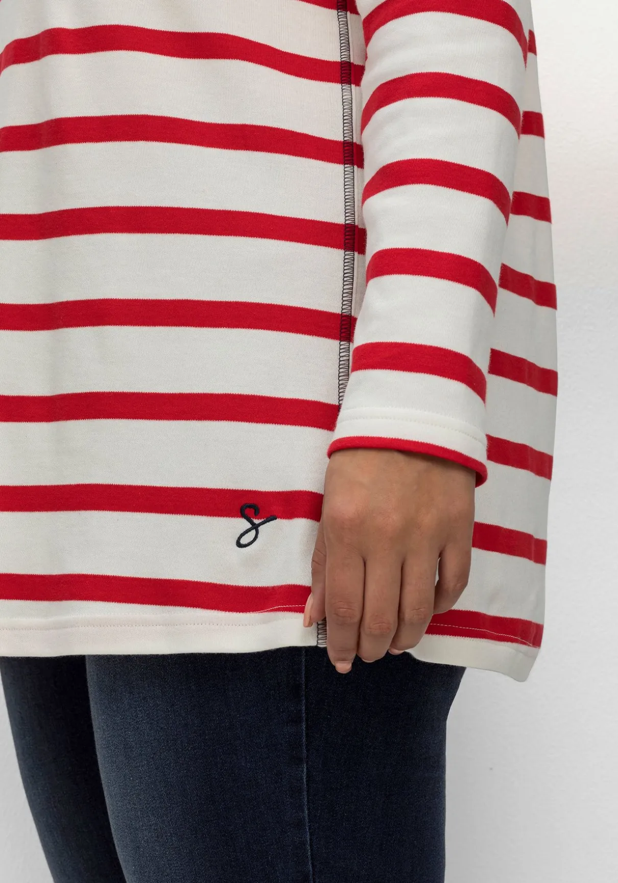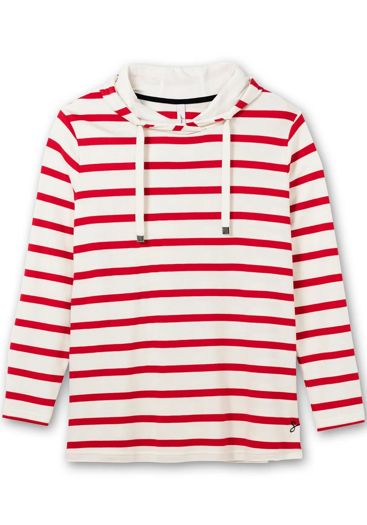 Gestreiftes Langarmshirt in Hoodie-Optik. Für den sportlich-maritimen Look sorgen die garngefärbten Streifen genauso wie die Kapuze mit Bindeband. Das Ringelshirt ist ein echter Mode-Evergreen und sollte in keiner Garderobe fehlen!