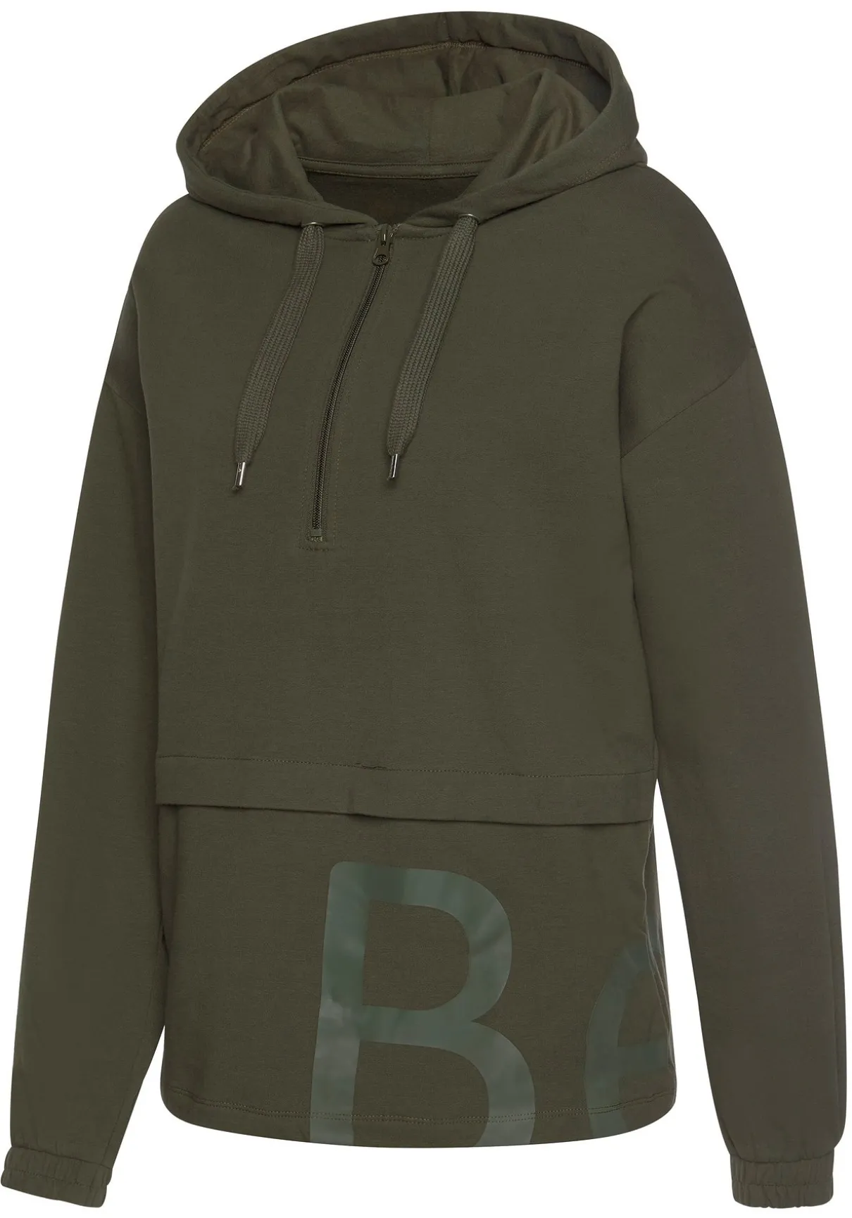 Gemütliches Sweatshirt von Bench. Dezentes großes Markenlogo unten auf der Vorderseite. Kapuze mit Kordelzugbund. Reißverschluss auf der Vorderseite. Geraffte Ärmelbündchen und durch eine Absteppung betonte Taille. Für Freizeit und Sport geeignet. Kuschelig weiche, stretchige Baumwoll-Sweatqualität.
