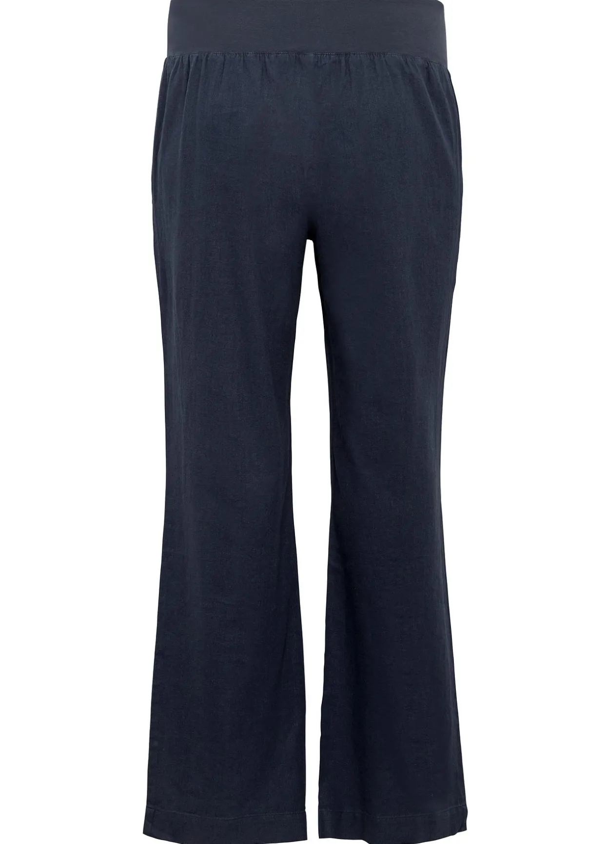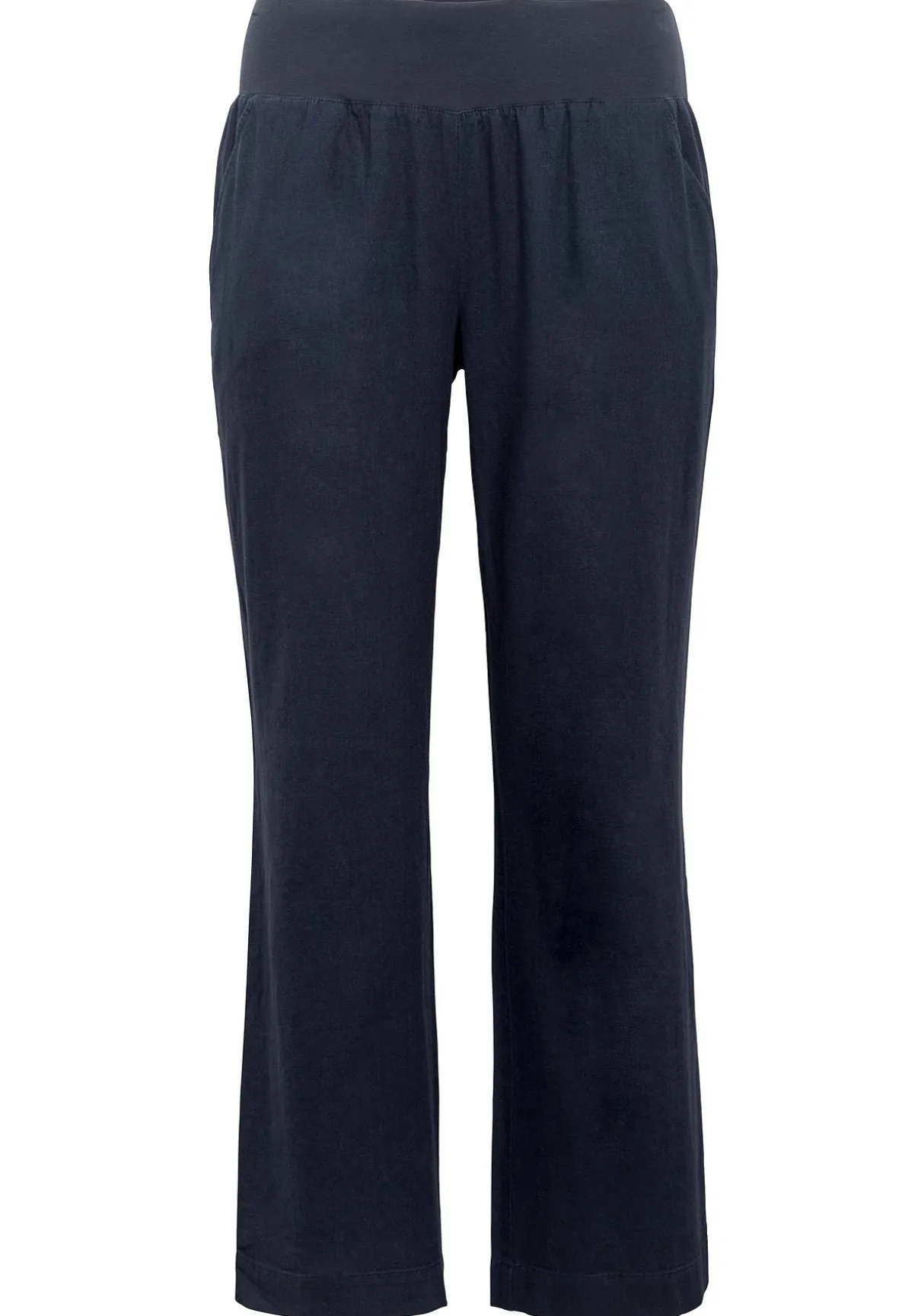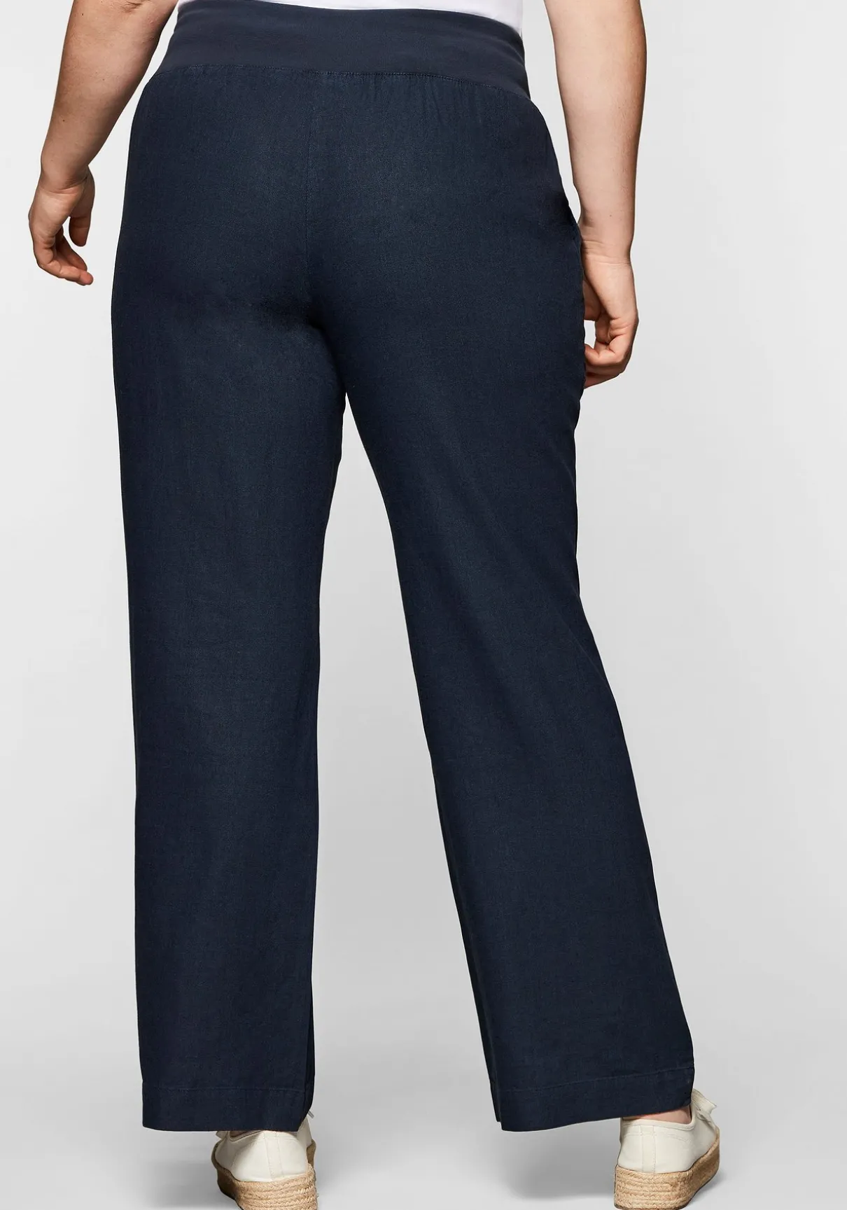 Hose im Curvy-Schnitt ELLA mit extraweitem Beinverlauf, für Frauen mit sehr kräftigen Oberschenkeln und Waden. Der breite Gummischlupfbund trägt sich sehr bequem und ist gleichzeitig ein modisches Detail. Zwei seitliche Eingrifftaschen ergänzen den cleanen, sommerlichen Look.