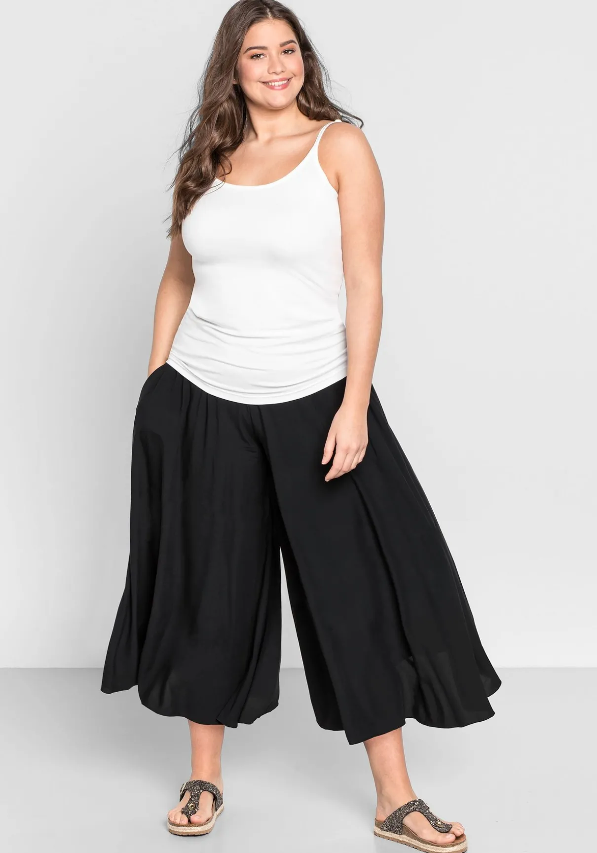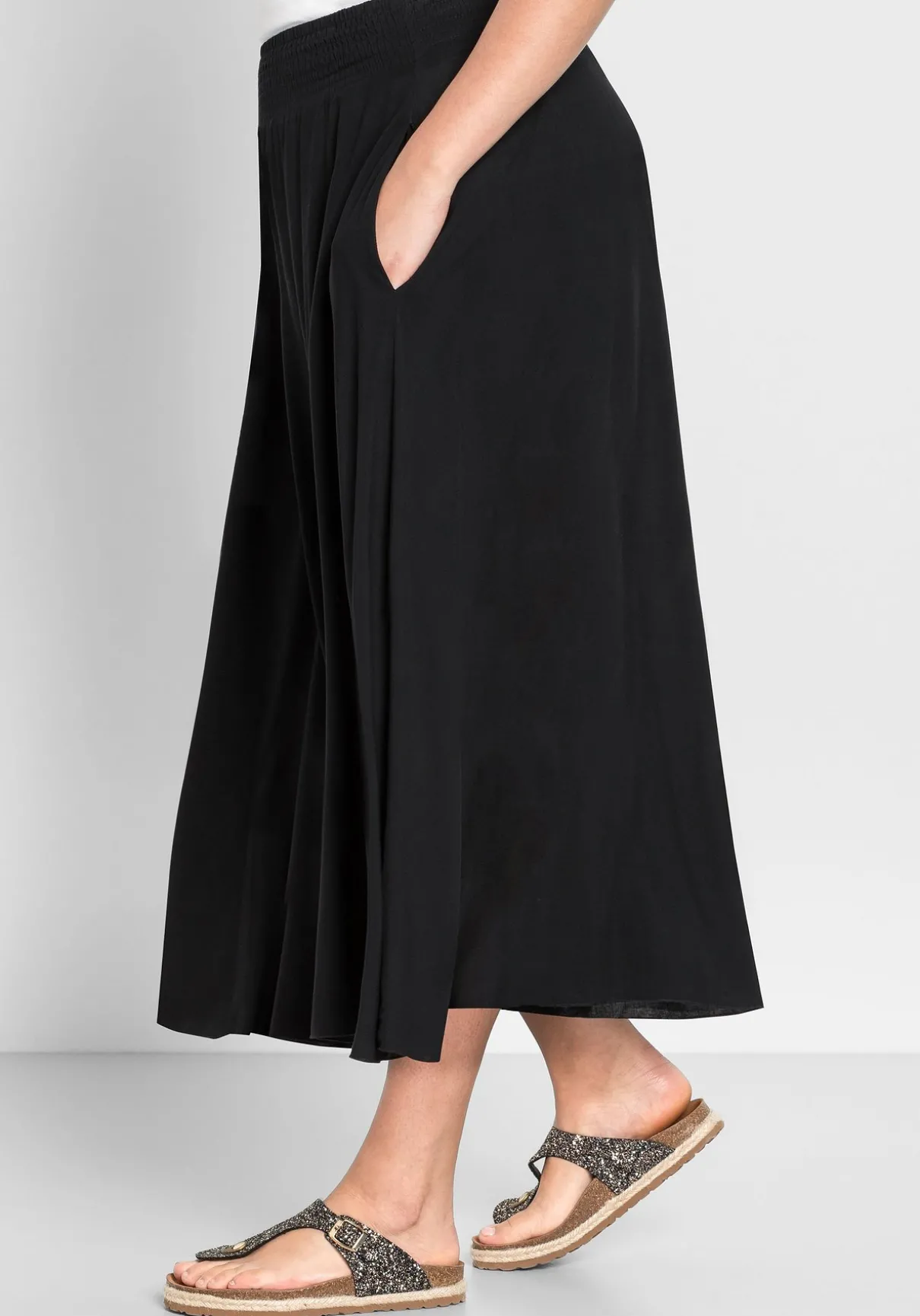 Dieser Style von sheego hat ein kleines Geheimnis: Er sieht aus wie ein Rock, ist aber so bequem und unkompliziert zu tragen wie eine Hose. Der breite Smokbund macht den Hosenrock besonders bequem. Praktisch: In der Seitennaht befinden sich zwei Taschen.