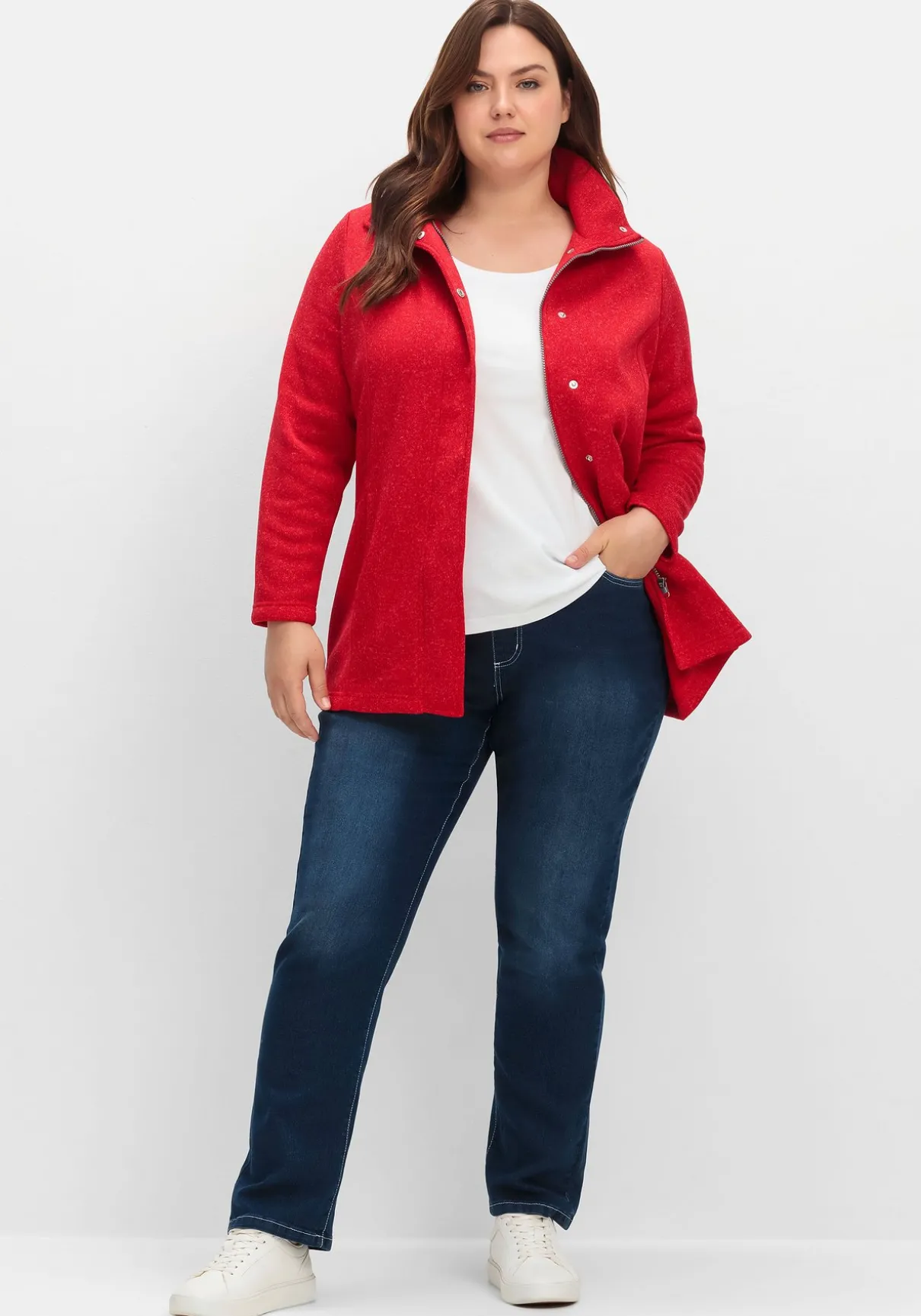 Outdoorjacke aus weichem Strickfleece. Drei tolle Eigenschaften sorgen hier für ein optimales Trageerlebnis: Die Jacke hält warm, schmeichelt der Figur und ist unglaublich kuschelig! Ausgestattet ist sie mit einem Umlegekragen und zwei nahtfeinen Taschen, eine Druckknopfleiste verdeckt den Reißverschluss. Wiener Nähte sorgen für eine optimale Passform.