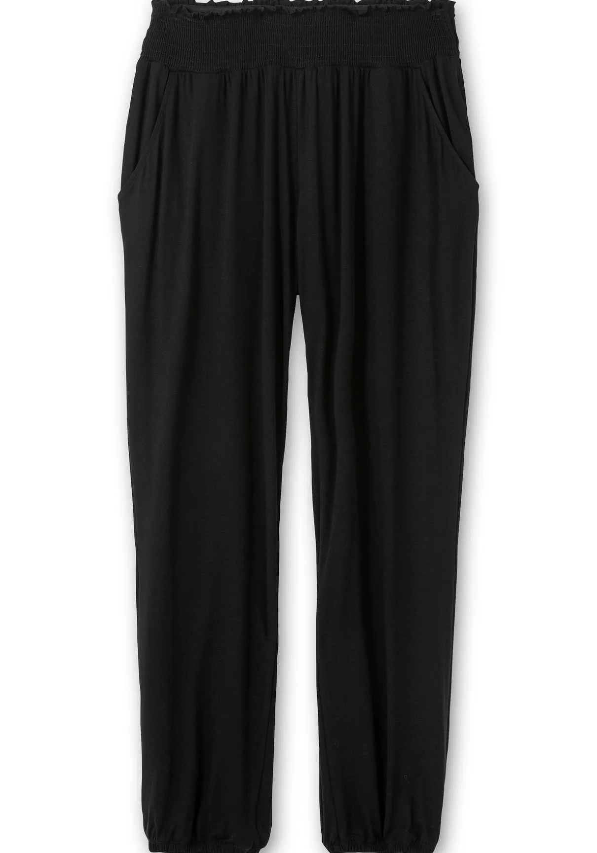 Strandhose aus Jersey. Der breite Smokbund und der Beinabschluss mit Gummizugbündchen sorgen für einen bequemen Sitz und eine sportive Optik. Seitliche Eingrifftaschen ergänzen den Look. Perfekt für entspannte Freizeitaktivitäten oder einen Urlaubstag!