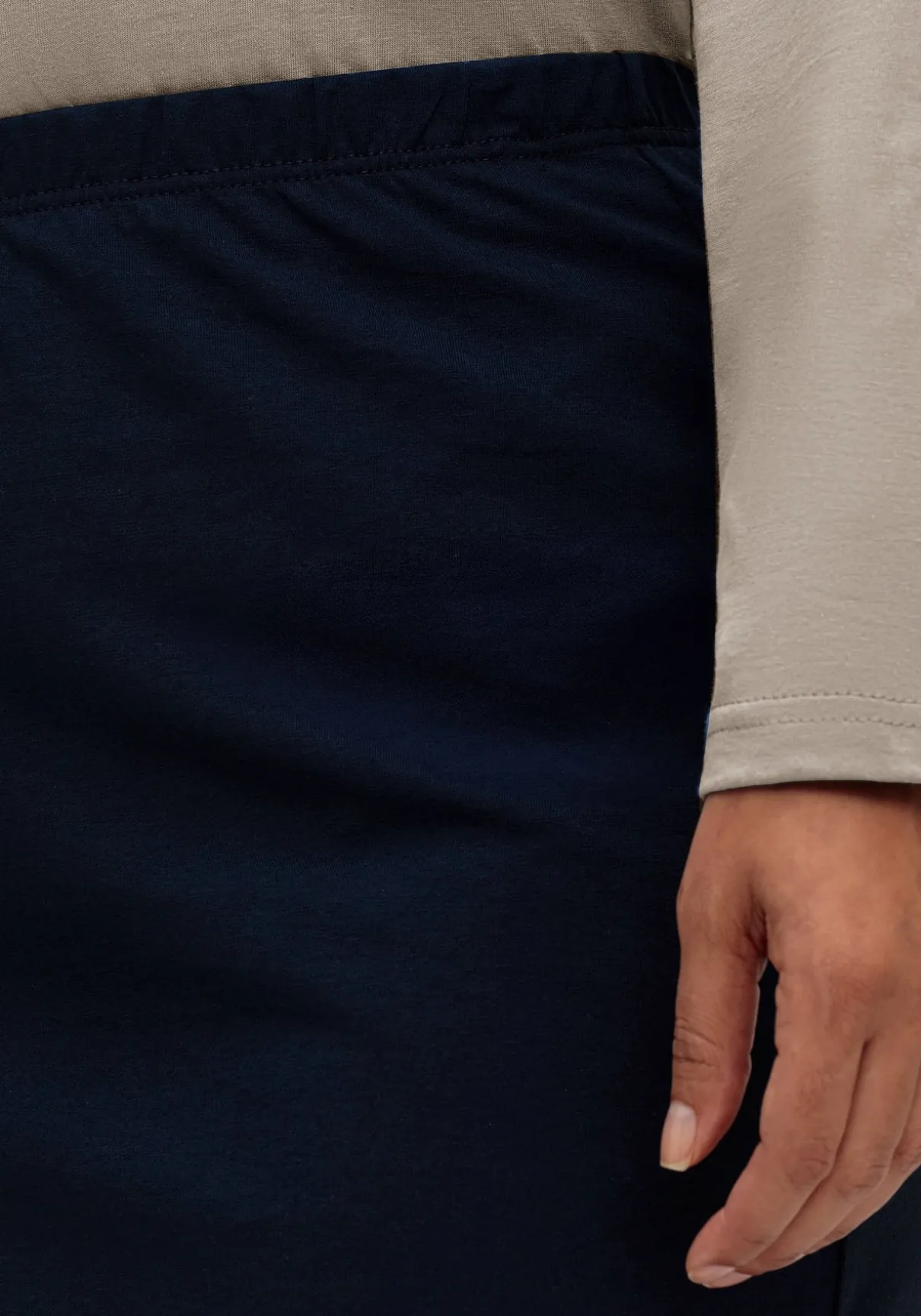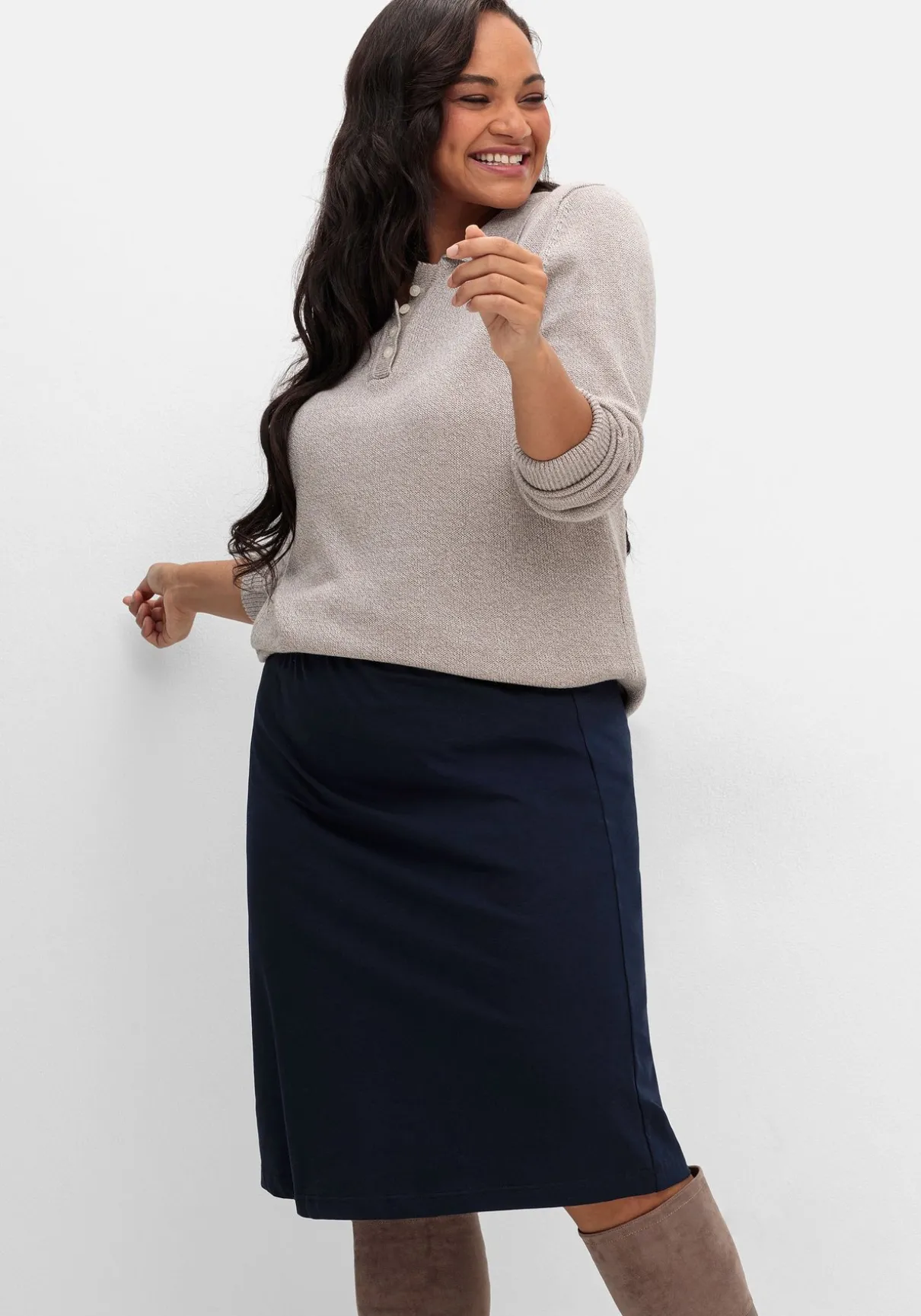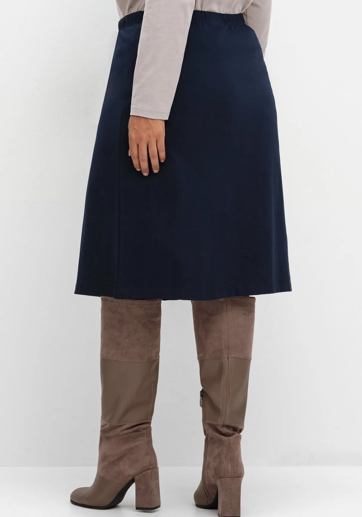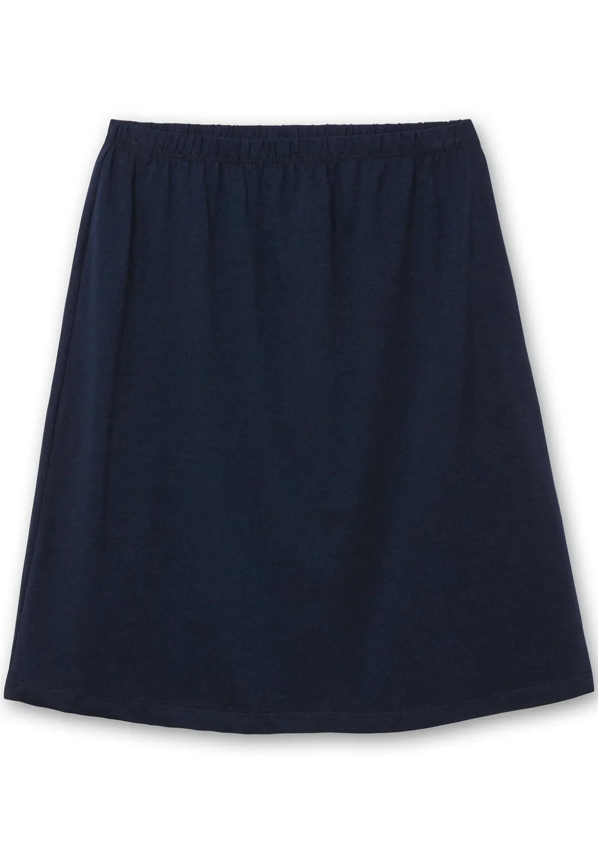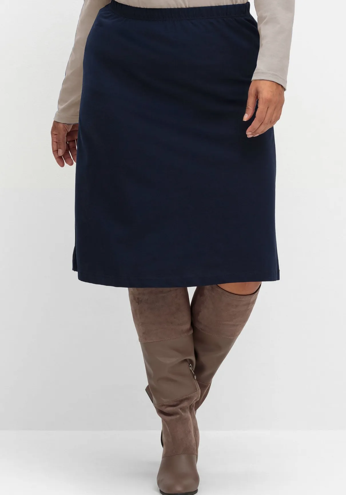 Jerseyrock in Knielänge. Der bequeme Rundum-Gummizugbund ermöglicht ein schnelles Hineinschlüpfen in den Rock. Auch die elastische Qualität trägt zu einem angenehmen Tragegefühl bei. Durch den leichten A-Linien-Schnitt erhält der femininen Schwung und eine elegante Note.