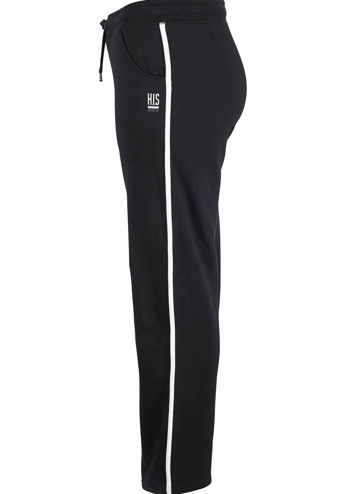 Seitliche Kontraststreifen. Elastischer Bund mit Tunnelzugband. Seitliche Eingrifftaschen. Offener Beinabschluss. Trageangenehme Qualität.