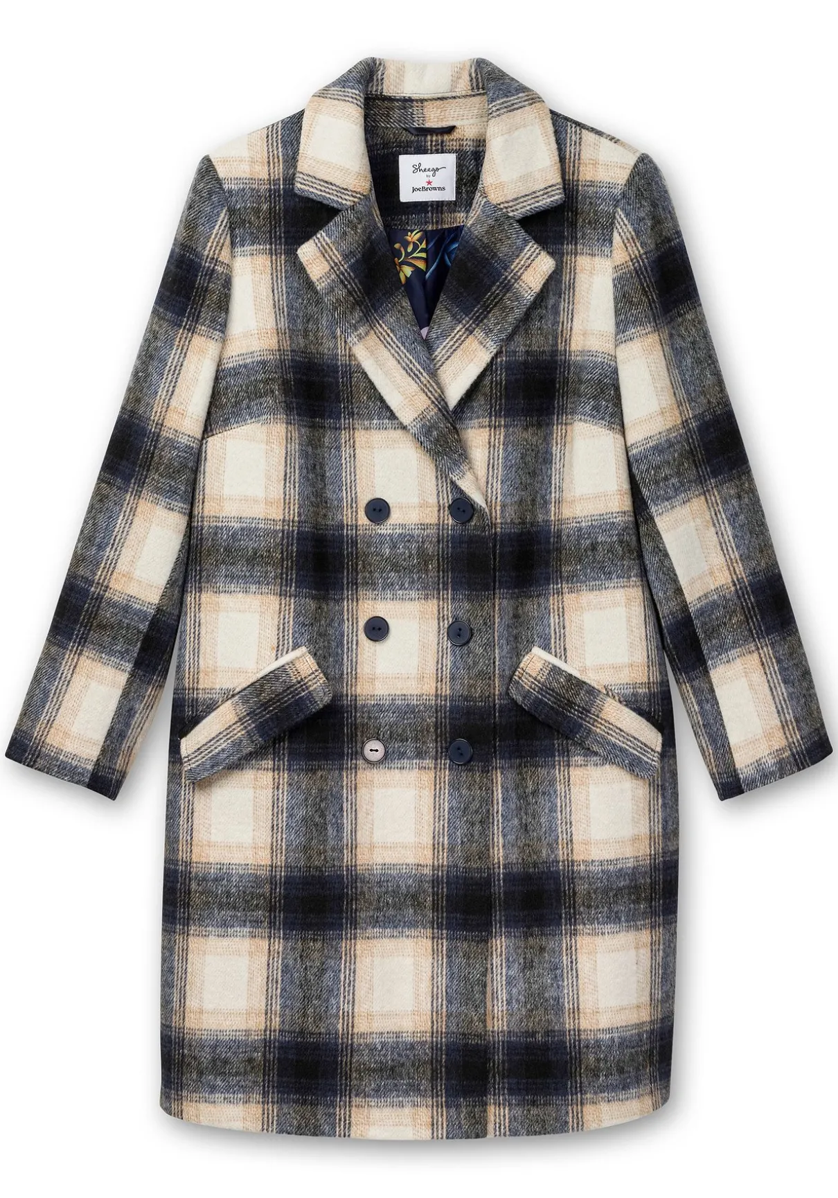 Kurzmantel mit Wolle von sheego by Joe Browns. Das ausdrucksstarke Karomuster wird durch einen klassischen Schnitt stilvoll ergänzt. So ist der Mantel mit großem Reverskragen und doppelreihiger Knopfleiste gearbeitet. Dazu kommen zwei schräge Pattentaschen und ein Gehschlitz hinten, der für Bewegungsfreiheit sorgt. Modischer Eyecatcher ist das mit Blumen bedruckte Satinfutter innen.