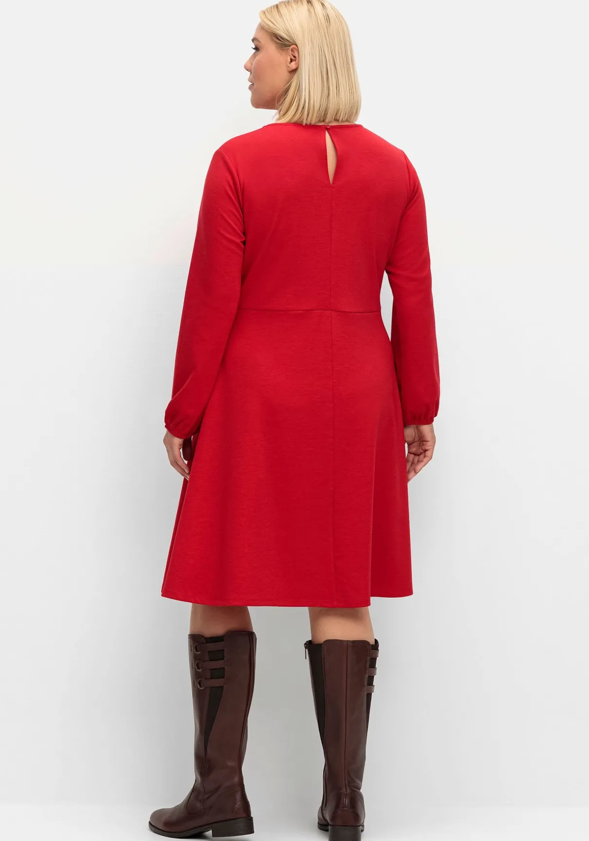 Das Kleid ist knielang geschnitten und schmeichelt der A-Figur.