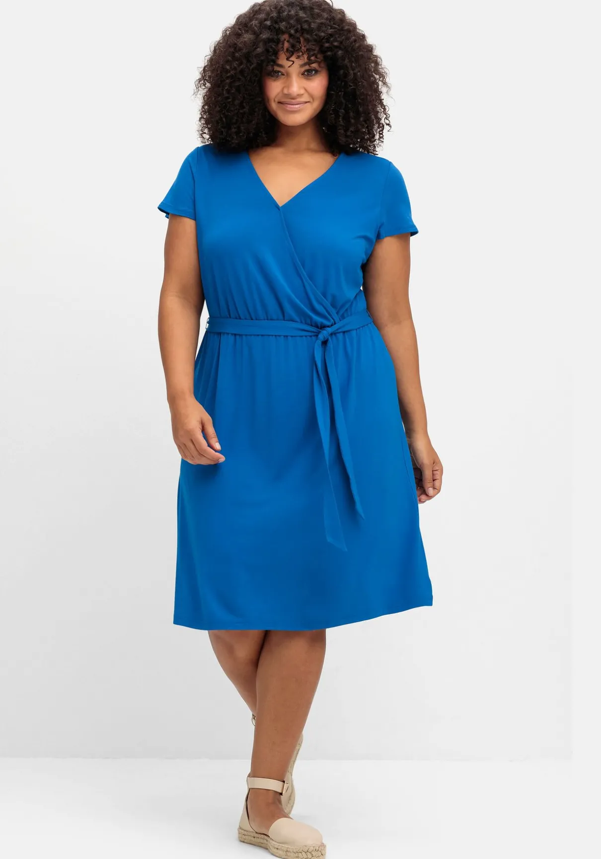 Kleid in Wickeloptik. Der V-Ausschnitt in Wickeloptik wird im Nacken durch gekreuzte Bänder raffiniert ergänzt. Das Bindeband setzt die Taille feminin in den Fokus, der locker schwingende Rockteil verleiht dem Look Leichtigkeit.