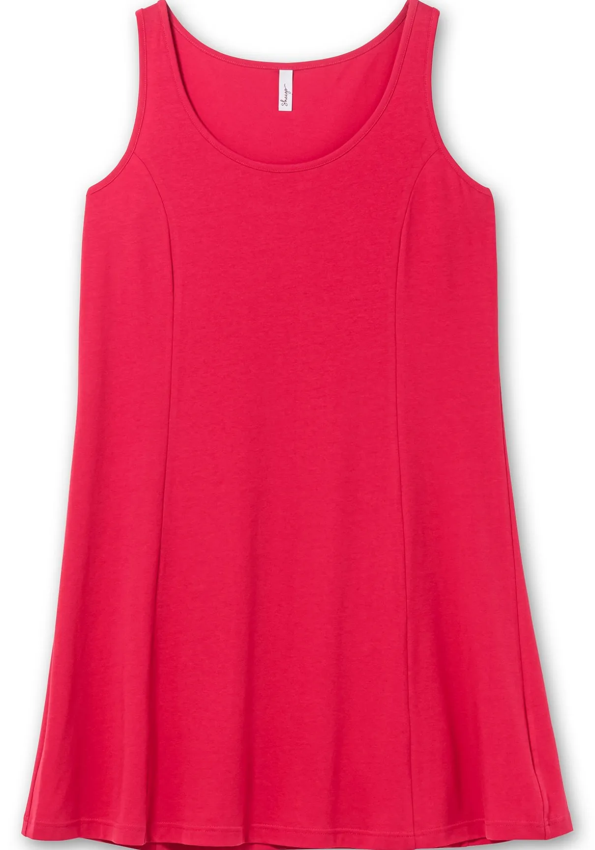 Dieses Kleid mit breiten, ärmellosen Trägern ist ein toller Begleiter für den Sommer. Sein schlichtes Design mit Rundhalsausschnitt macht es zu einem echten Kombitalent. In bequemer A-Linie.