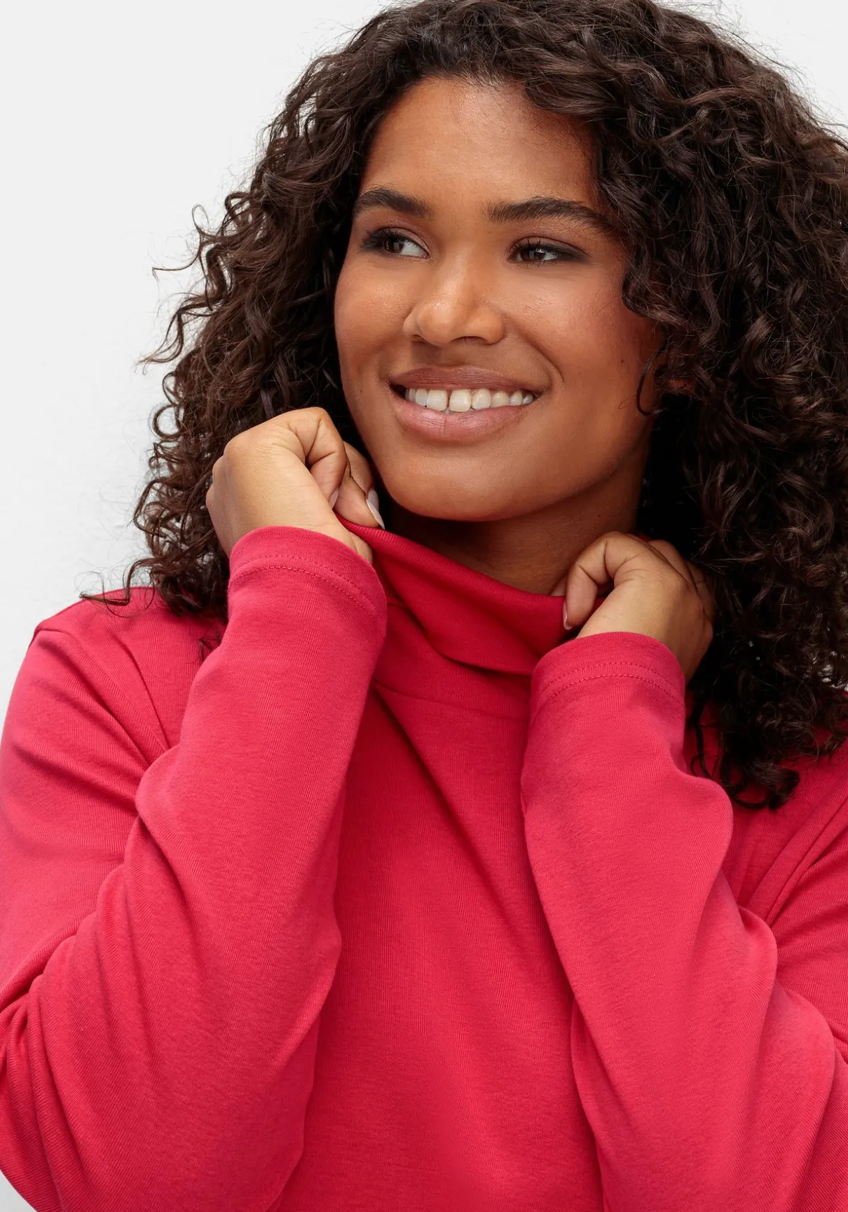 Langarmshirt mit Rollkragen. Die ausgestellte Form macht den schlichten Style zum unkomplizierten Kombipartner – ideal zu figurbetonenden Unterteilen.