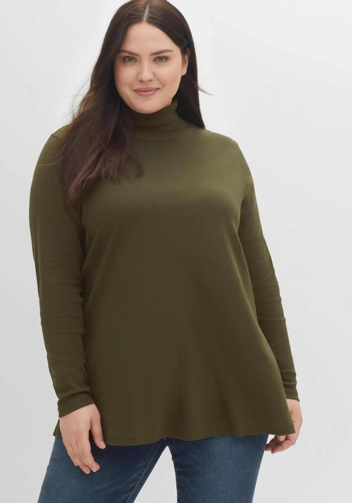 Langarmshirt mit Rollkragen. Die ausgestellte Form macht den schlichten Style zum unkomplizierten Kombipartner – ideal zu figurbetonenden Unterteilen.