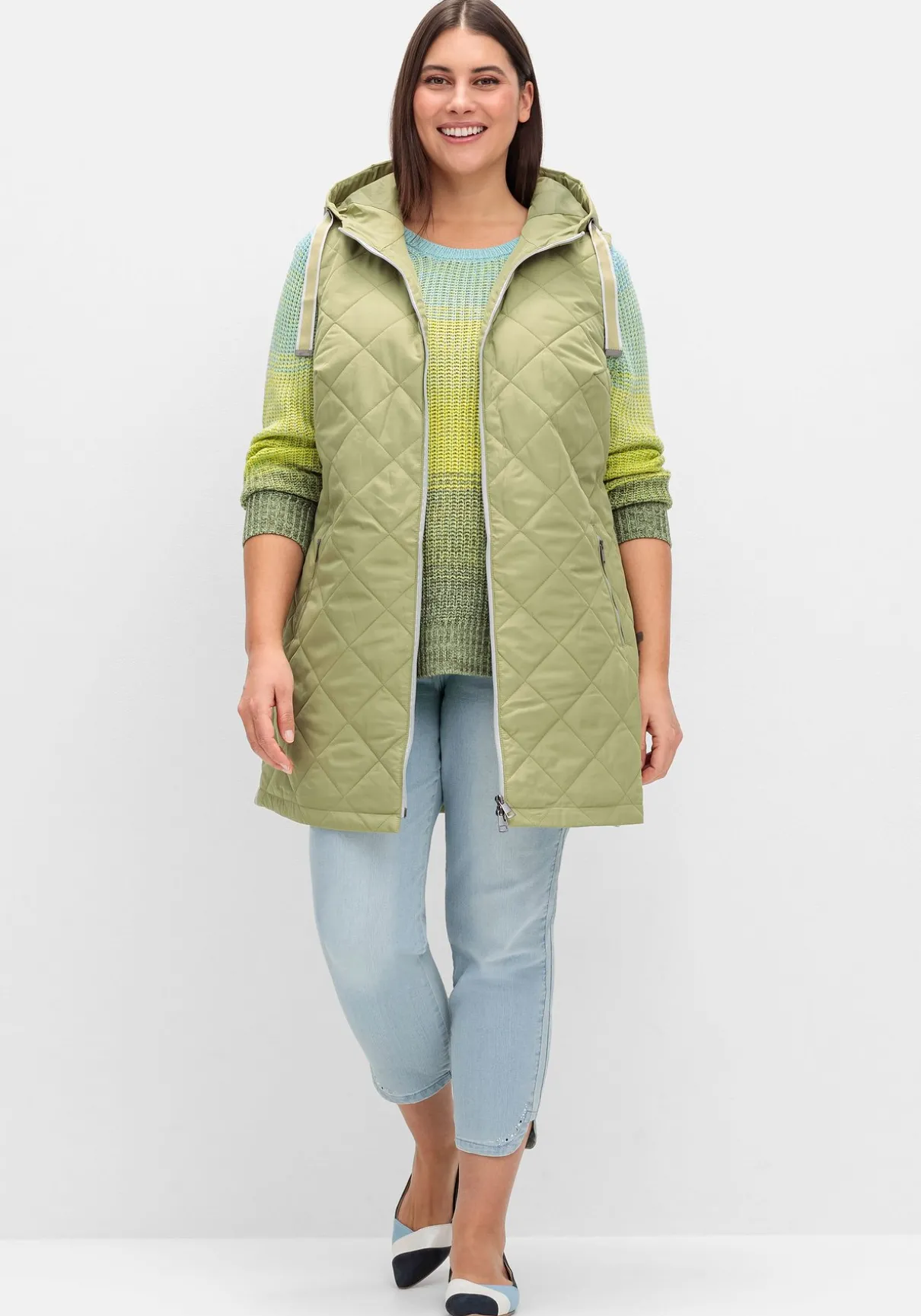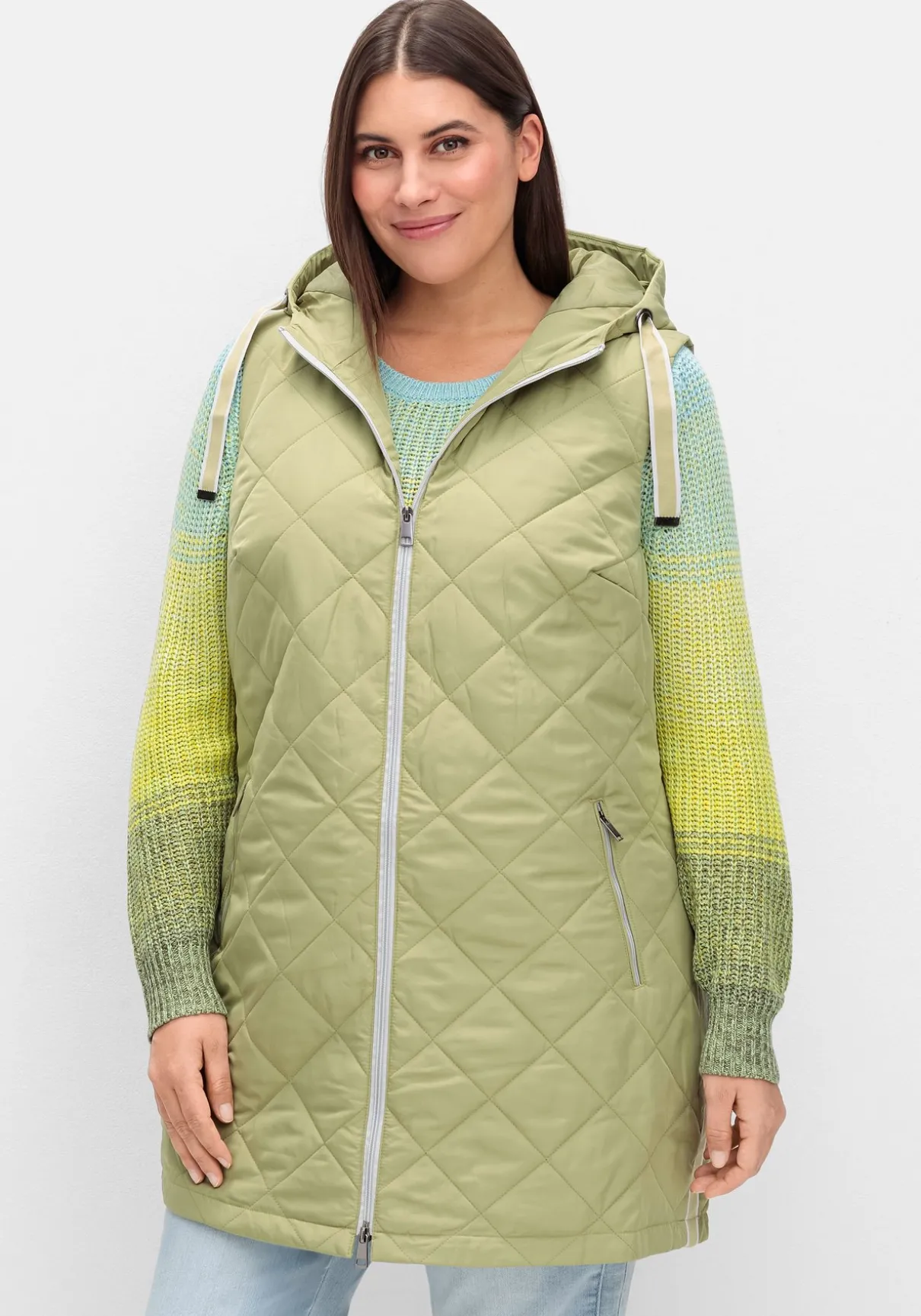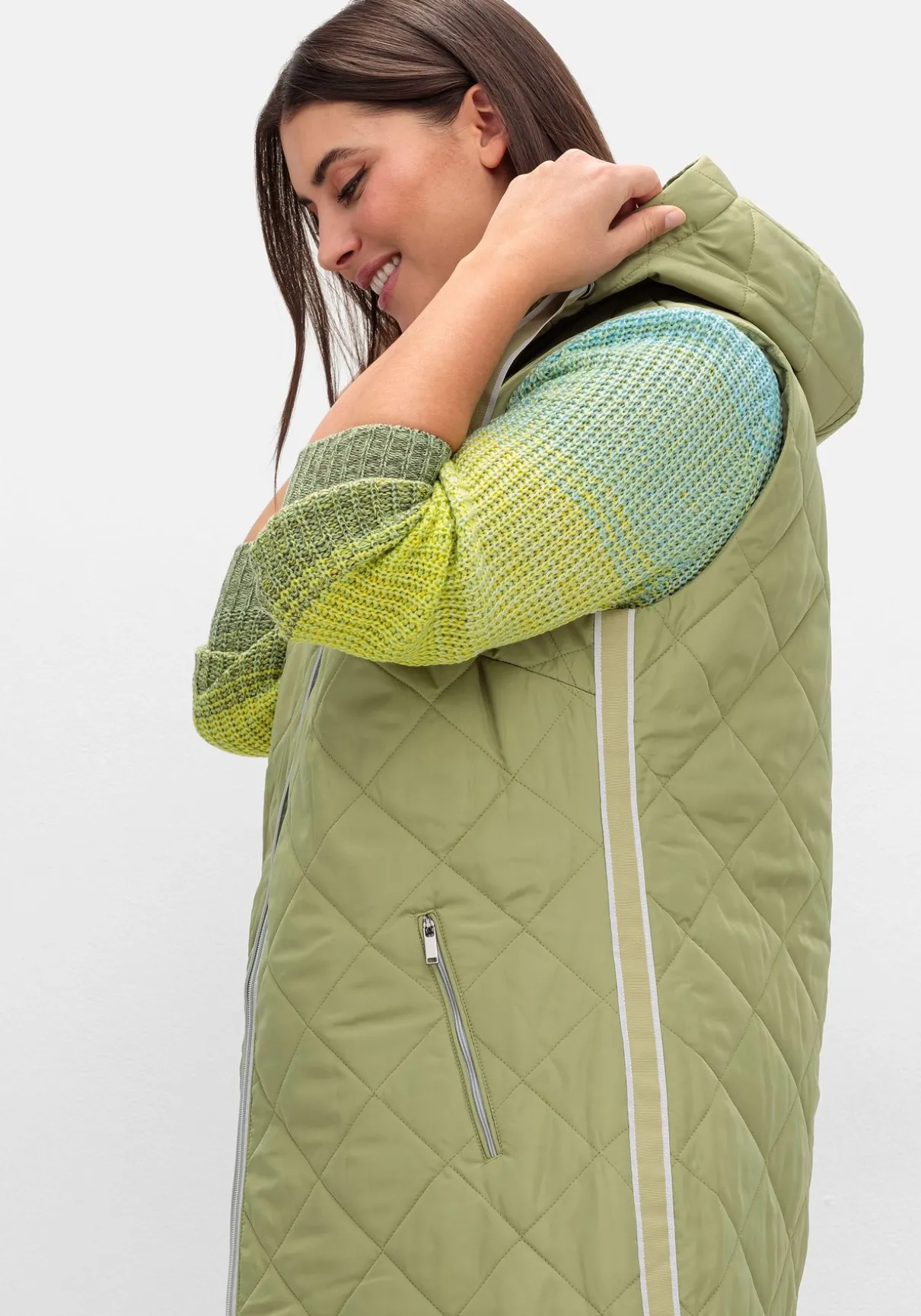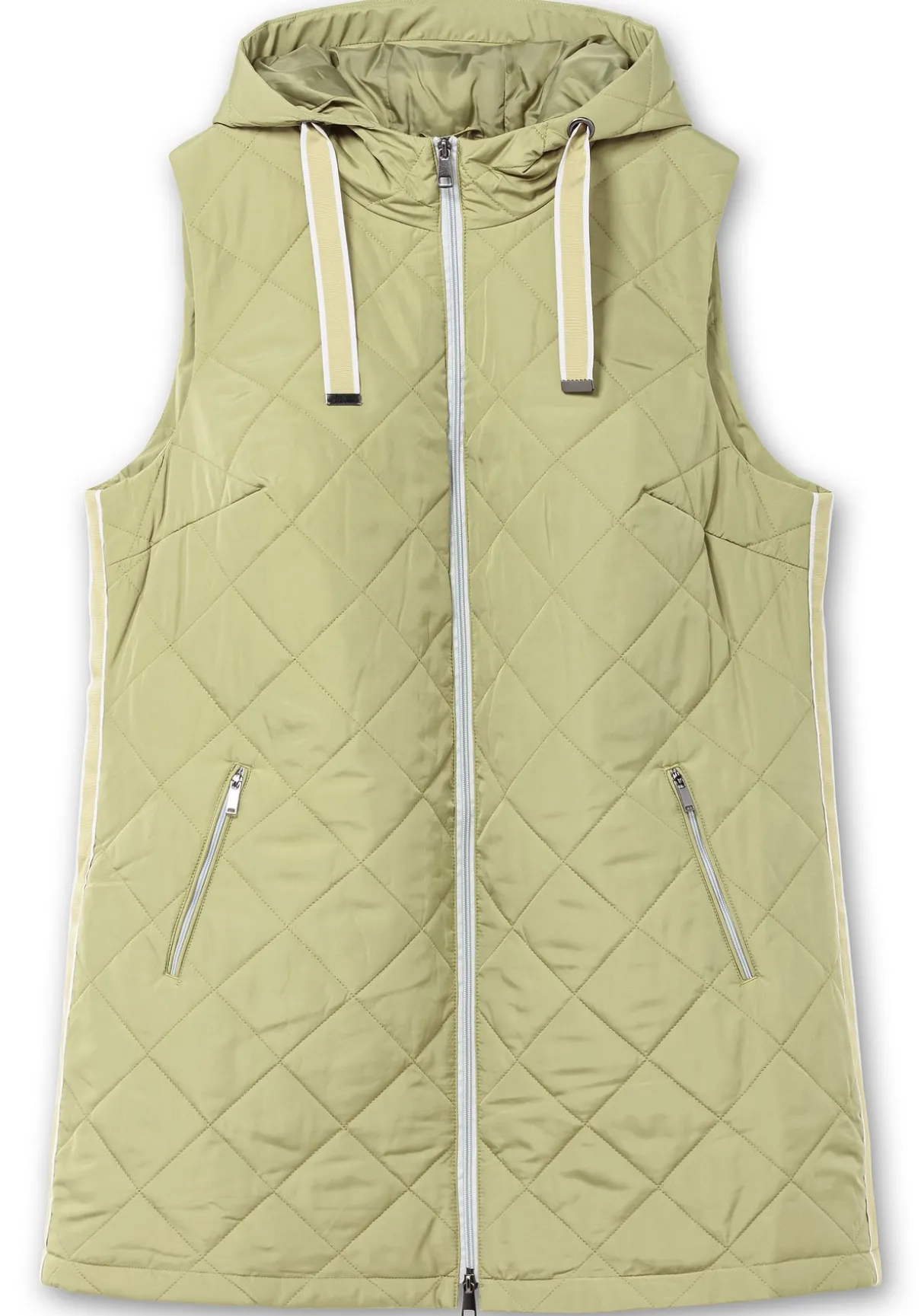 Steppweste mit Kapuze und Bindeband. Die Rautensteppung verleiht der Weste eine dynamische Optik, kontrastfarbene Details setzen modische Akzente. So wird der seitliche Galonstreifen zum Eyecatcher, gleichzeitig besitzt er einen streckenden Effekt. Für optimalen Tragekomfort und viel Bewegungsfreiheit sorgt der auch von unten zu öffnende 2-Wege-Reißverschluss. Die beiden Eingrifftaschen sind ebenfalls mit Zipper zu schließen.