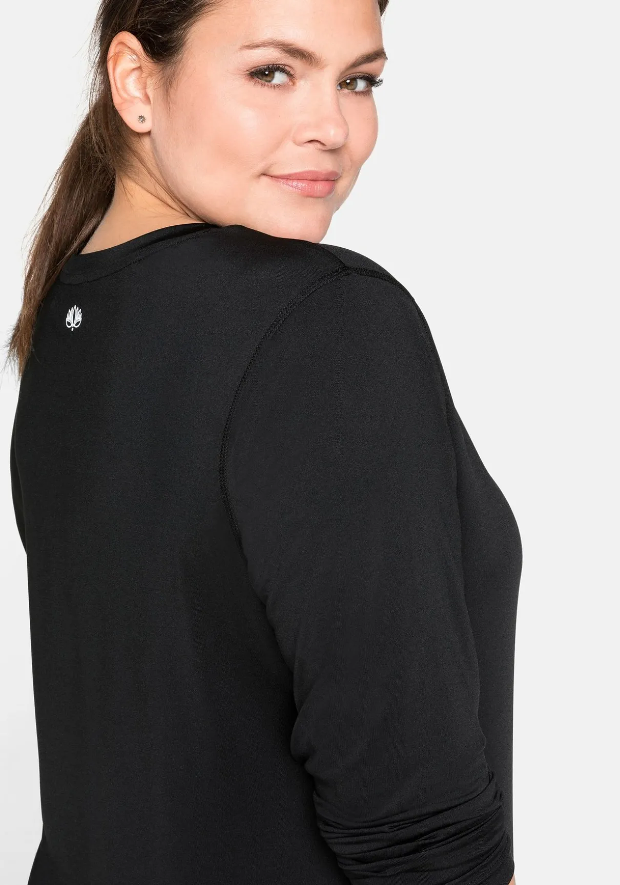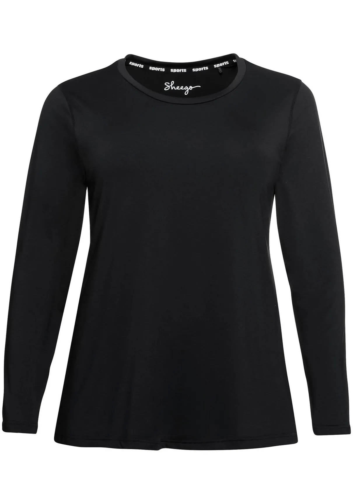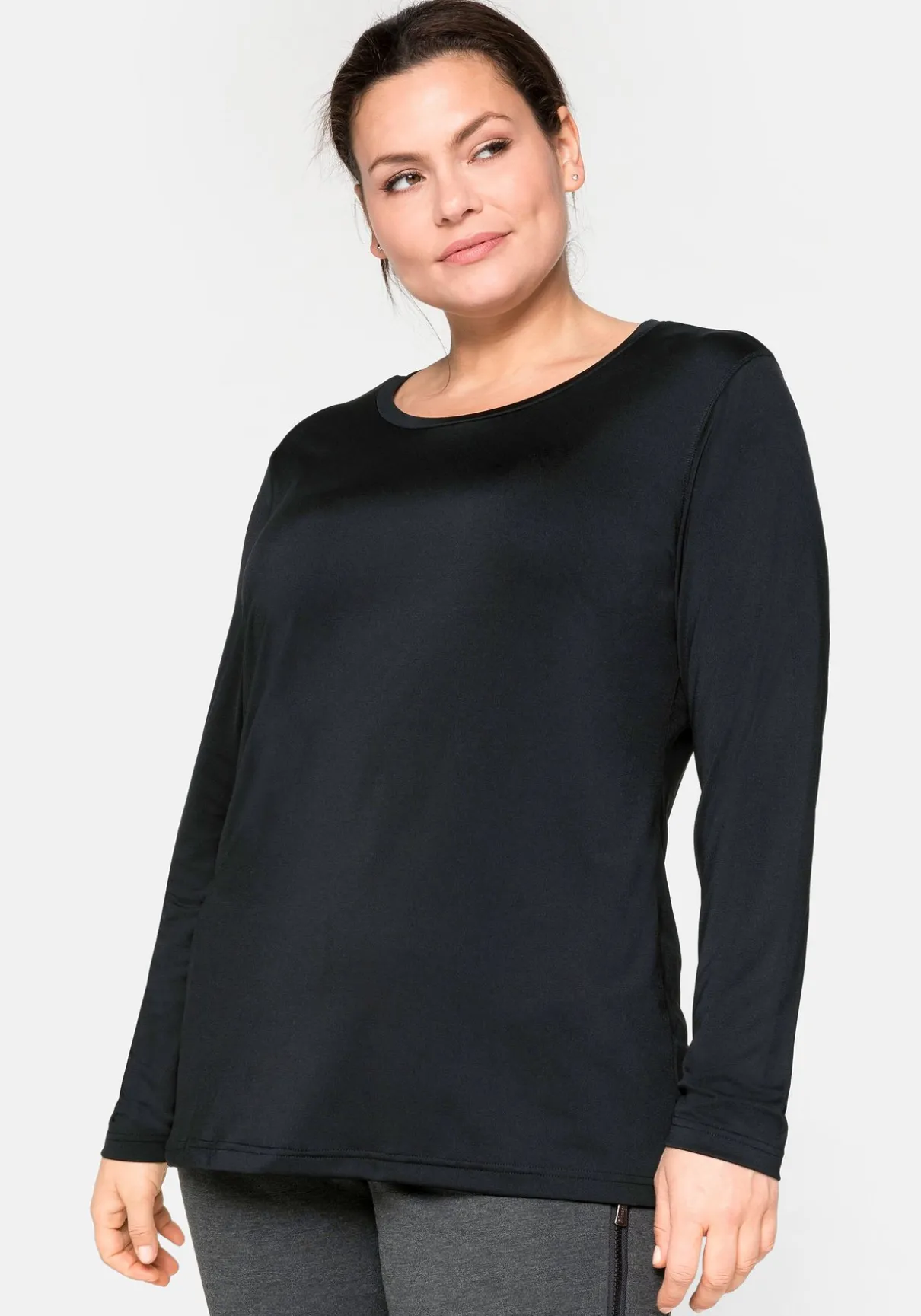Langärmliges Funktionsshirt mit Rundhalsausschnitt. Dieses Sportoberteil ist im Nacken mit einem kleinen, reflektierenden Druck versehen.