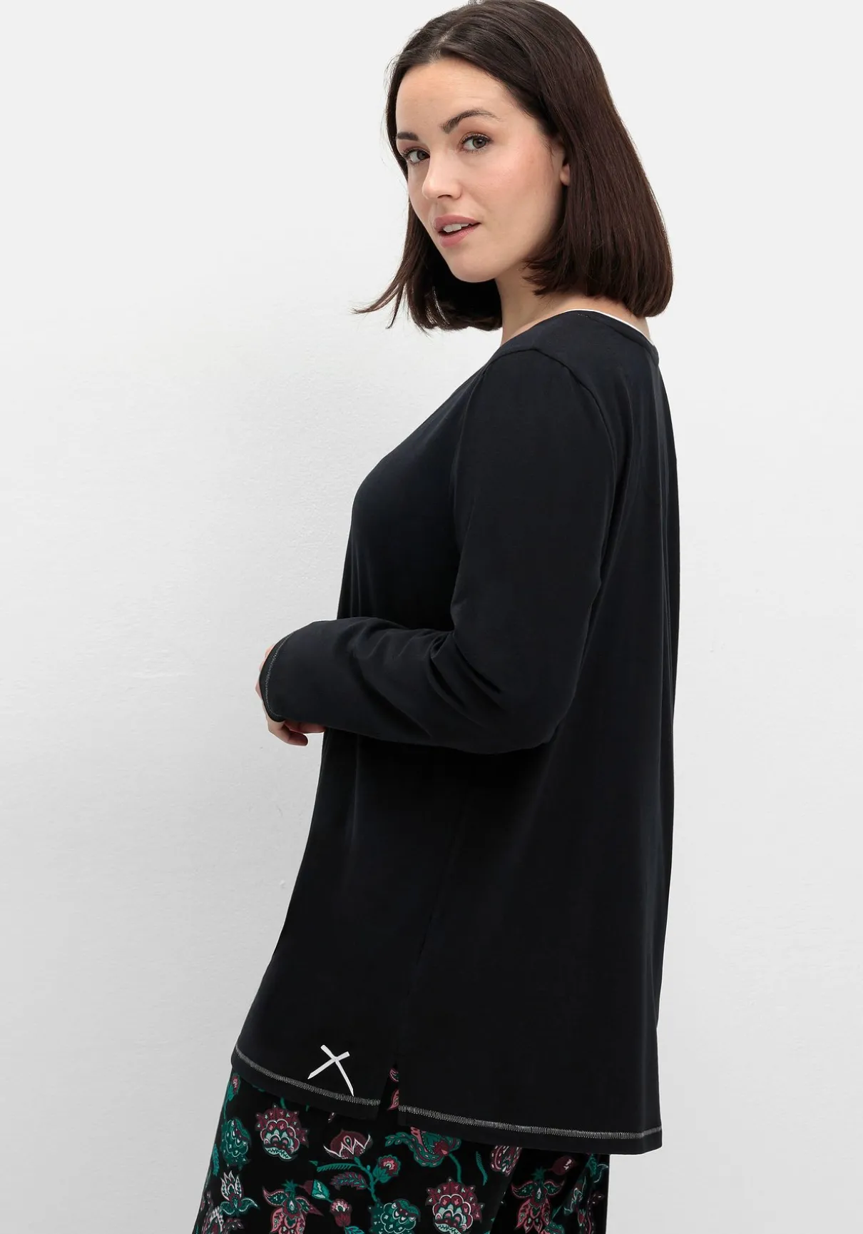 Langes Schlafshirt mit rundem Ausschnitt. Am geraden Saum befinden sich kurze, seitliche Schlitze sowie eine kleine Zierschleife.