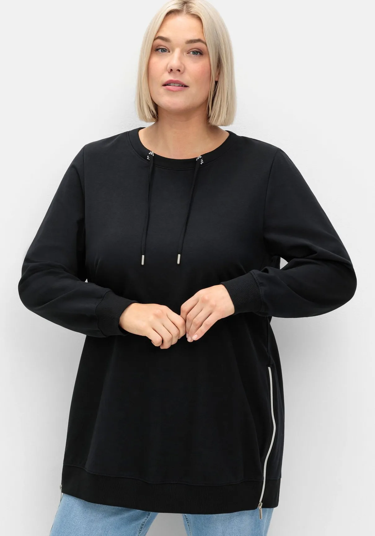 Sweatshirt in Longform. Durch die Bindebänder am Rundhalsausschnitt und die hohen seitlichen Zipper erhält das Oberteil einen lässigen, modernen Look. Für mehr Bewegungsfreiheit können die Reißverschlüsse auch offen getragen werden. Sportives Finish sind die bequemen elastischen Bündchen an Ärmel- und Saumabschluss.