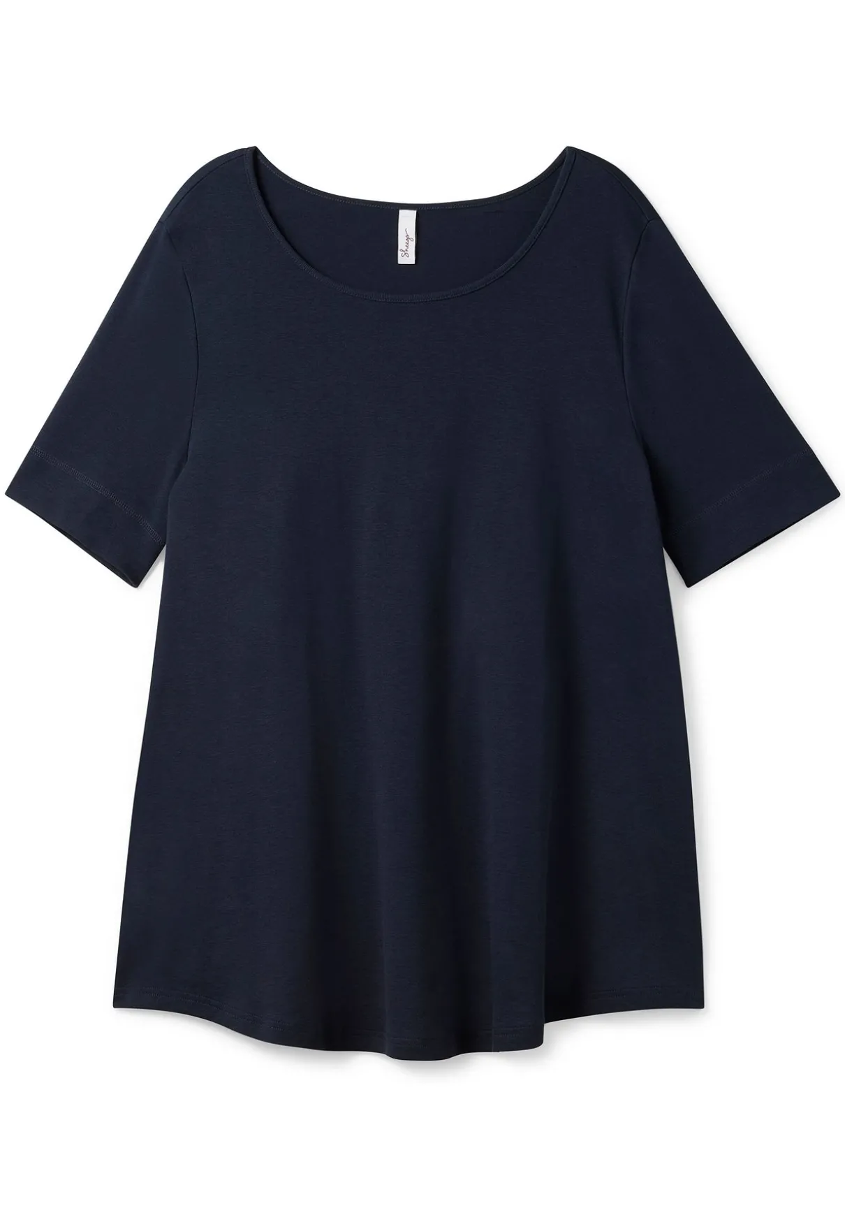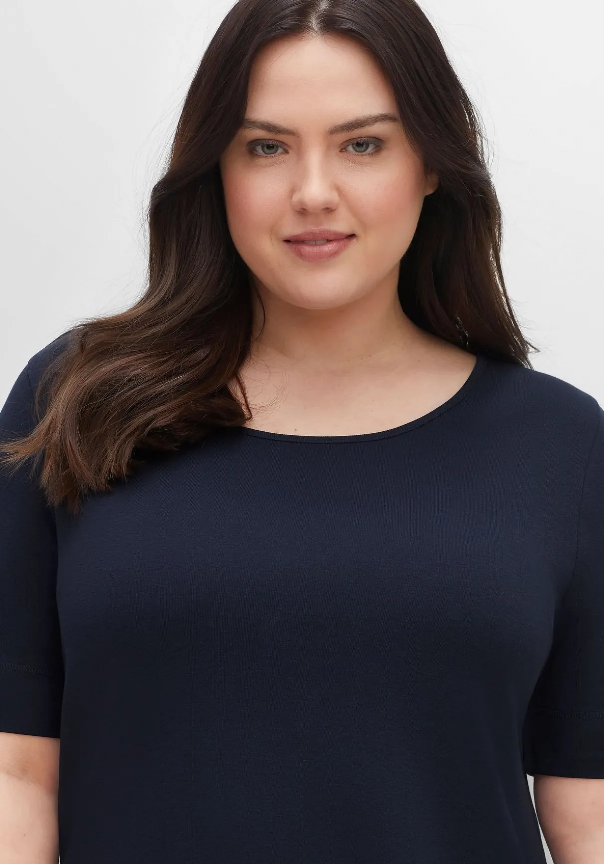 Longshirt mit abgerundetem Saum. Das Shirt ist mit einem etwas weiteren Rundhalsausschnitt gearbeitet und lässt sich zu vielen entspannten Looks kombinieren.