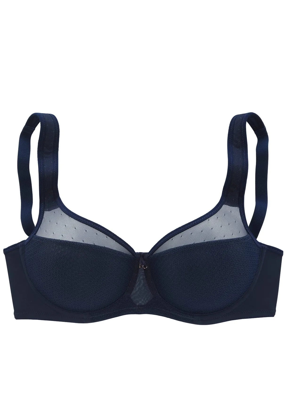 Nuance: Minimizer-BH mit Bügel. Leicht transparente Netzeinsätze im Obercup. Nahtlos vorgeformte Cups ohne Wattierung. Durch die besondere Schnittführung wird die Büste optisch verkleinert. Träger und Rückenverschluss verstellbar. Aus 79% Polyamid, 15% Polyester, 6% Elasthan
