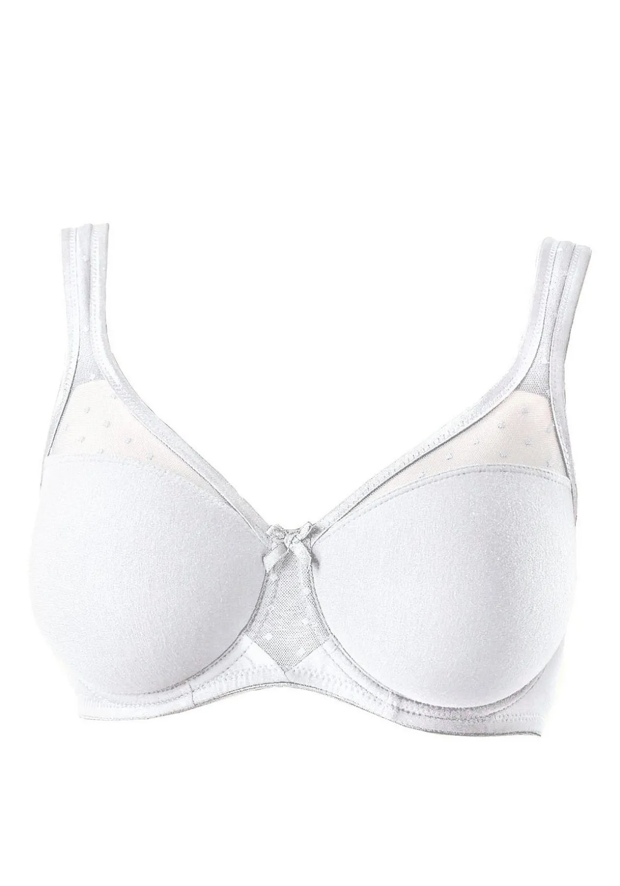 Dieser süße Minimizer-BH mit Bügel von Nuance ist die perfekte Kombination aus Funktionalität und Bequemlichkeit. Durch die besondere Schnittführung, wird die Brust optisch um eine Cupgröße verkleinert – für eine perfekte Passform und einen zuverlässigen Halt bis in große Größen. Die breiteren Träger sorgen zudem für einen komfortablen Halt. Die nahtlos vorgeformten Cups (ohne Wattierung) umschließen die Brust sicher und sorgen gleichzeitig für ein besonders angenehmes Tragegefühl. Hübsche Netzeinsätze an den Cupkanten im niedlichen Pünktchen-Desing, sowie die kleine Zierschleife in der vorderen Mitte verleihen dem Nuance Entlastungs-BH eine süße Note. Am Rückteil ermöglicht ein Haken- und Ösenverschluss das regulieren der Unterbrust. Die Träger sind ebenso hinten verstellbar. Der Mieder-BH ist aus 90% Baumwolle, 5% Polyamid, 5% Elasthan. BHs sind nicht trocknergeeignet, da die Versteller und Ringe durch die Hitze beschädigt werden und brechen.