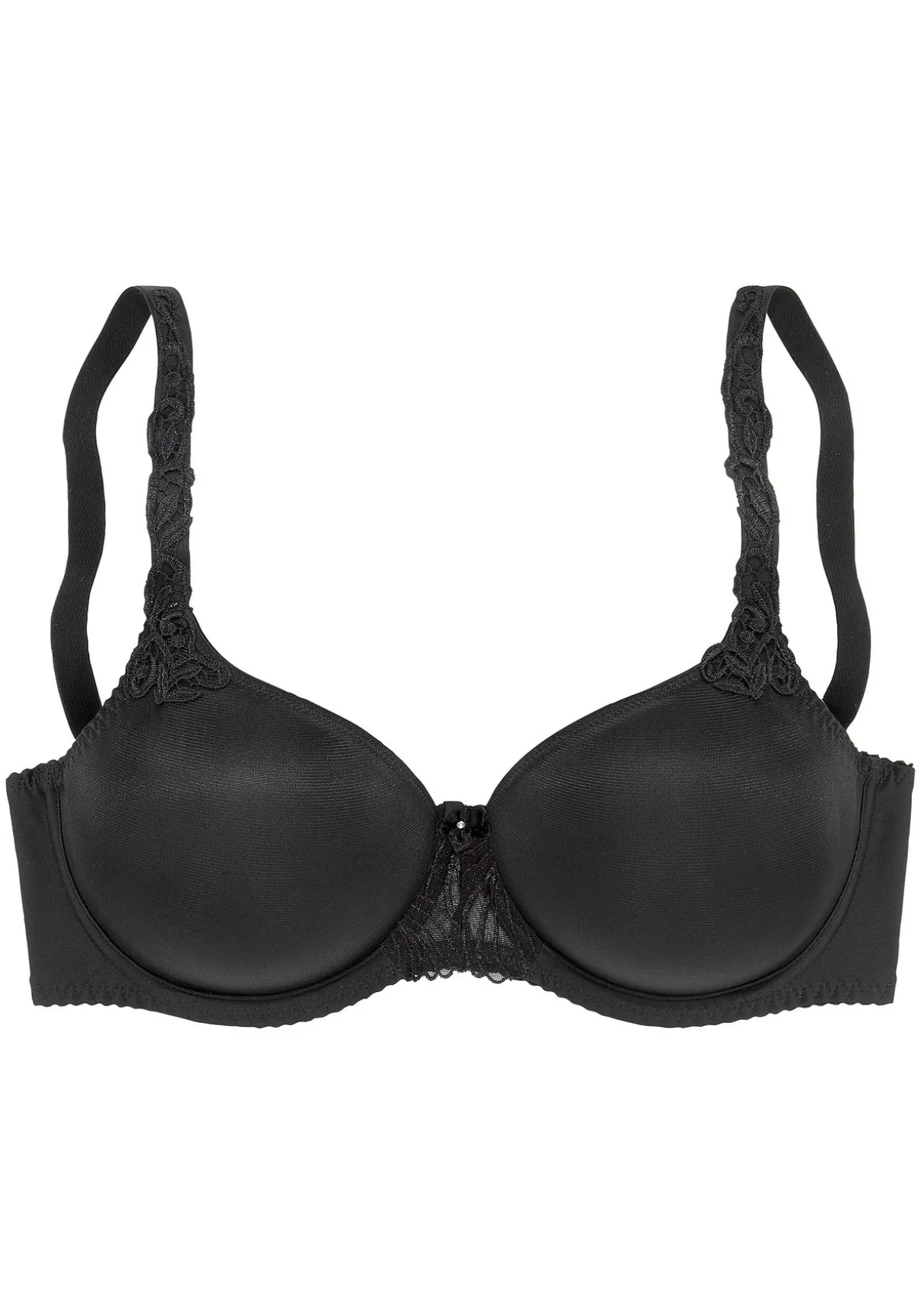 Femininer Minimizer-BH mit nahtlos vorgeformten Cups und Formbügel. Feine Zierschleife mit kleinem Glitzeraccessoire in der vorderen Mitte. Breite Träger mit Spitze verziert. Individuell verstellbare Träger und Rückenverschluss. Mit Liebe & Leidenschaft in Hamburg kreiert. Obermaterial: 65% Polyester, 25% Polyamid, 10% Elasthan.