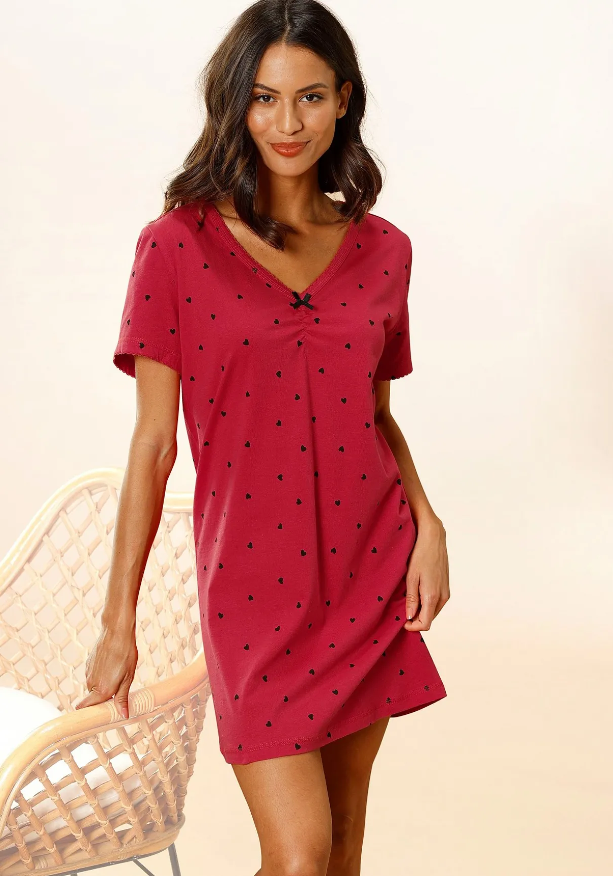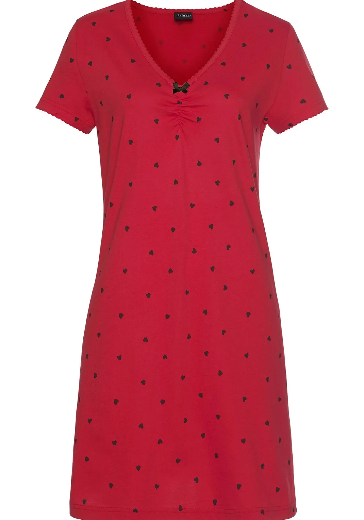 Kurzes Nachthemd mit Herzchen-Alloverprint aus weichem Single Jersey aus reiner Baumwolle. Mit jedem Kauf eines Artikels aus Cotton made in Africa untestützt Du die Initiative.