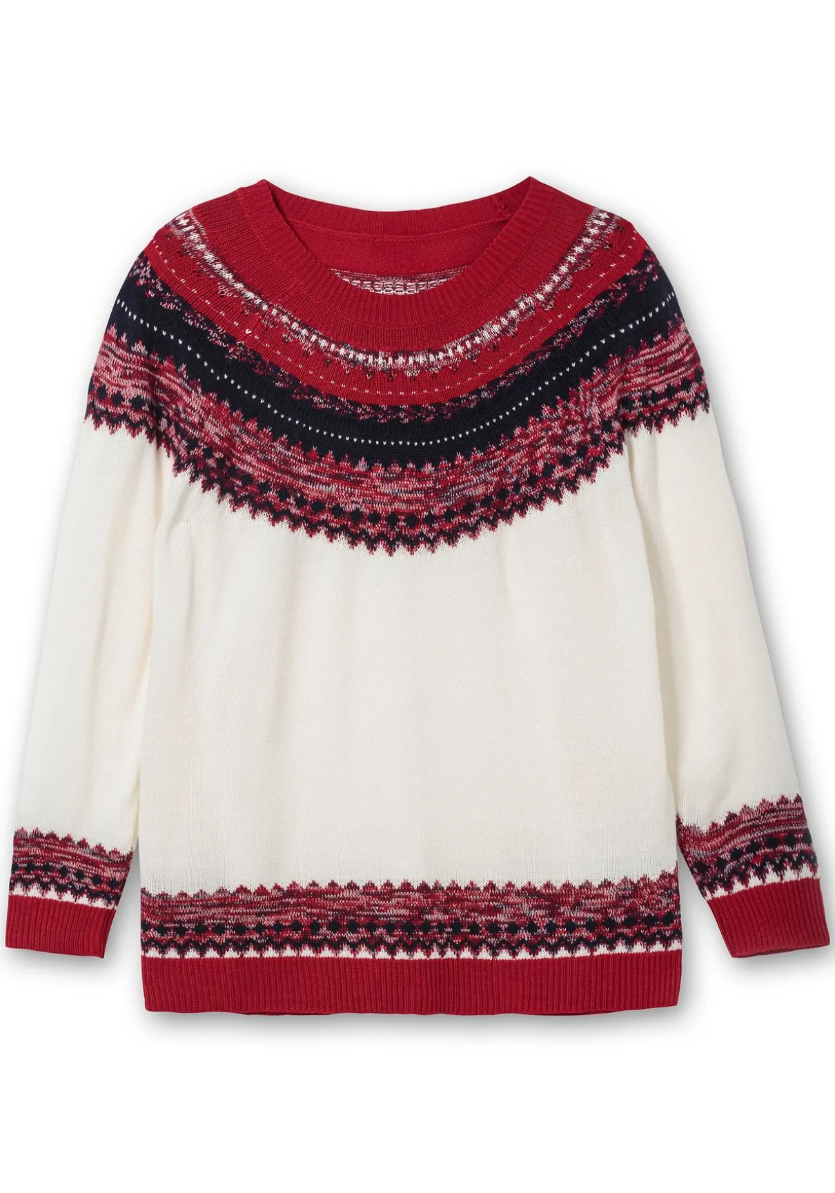 Pullover mit Norwegermuster. Das klassische Jacquardmuster an Ärmeln, Saum und Schulterpasse verleiht dem Pullover seine nordisch-winterliche Optik. Dazu kommen ein Rundhalsausschnitt und lange Raglanärmel, gerippte Abschlüsse ergänzen den sportiven Look.