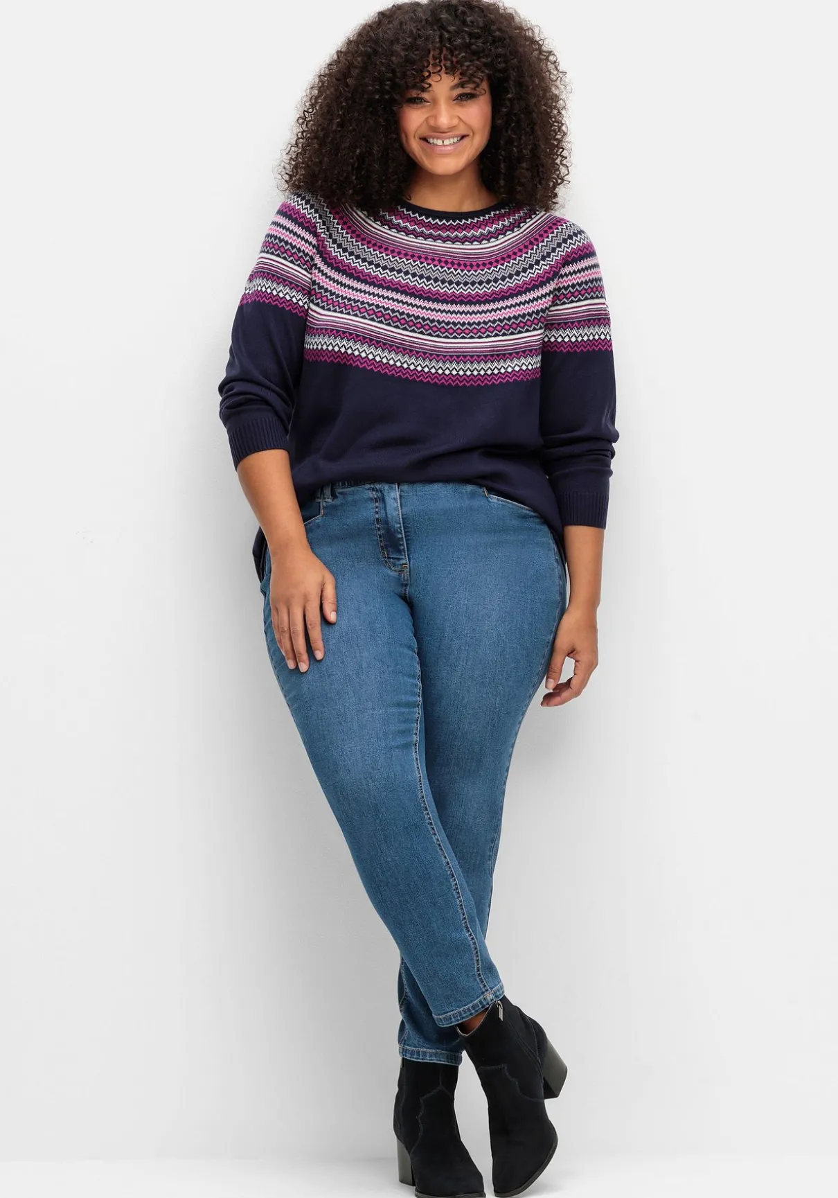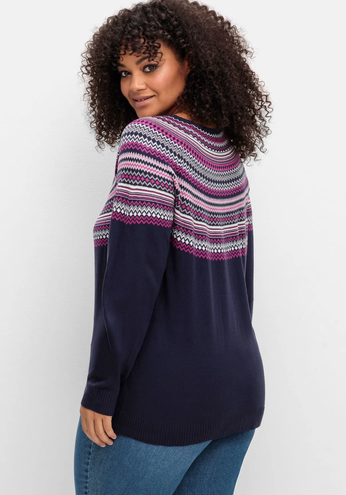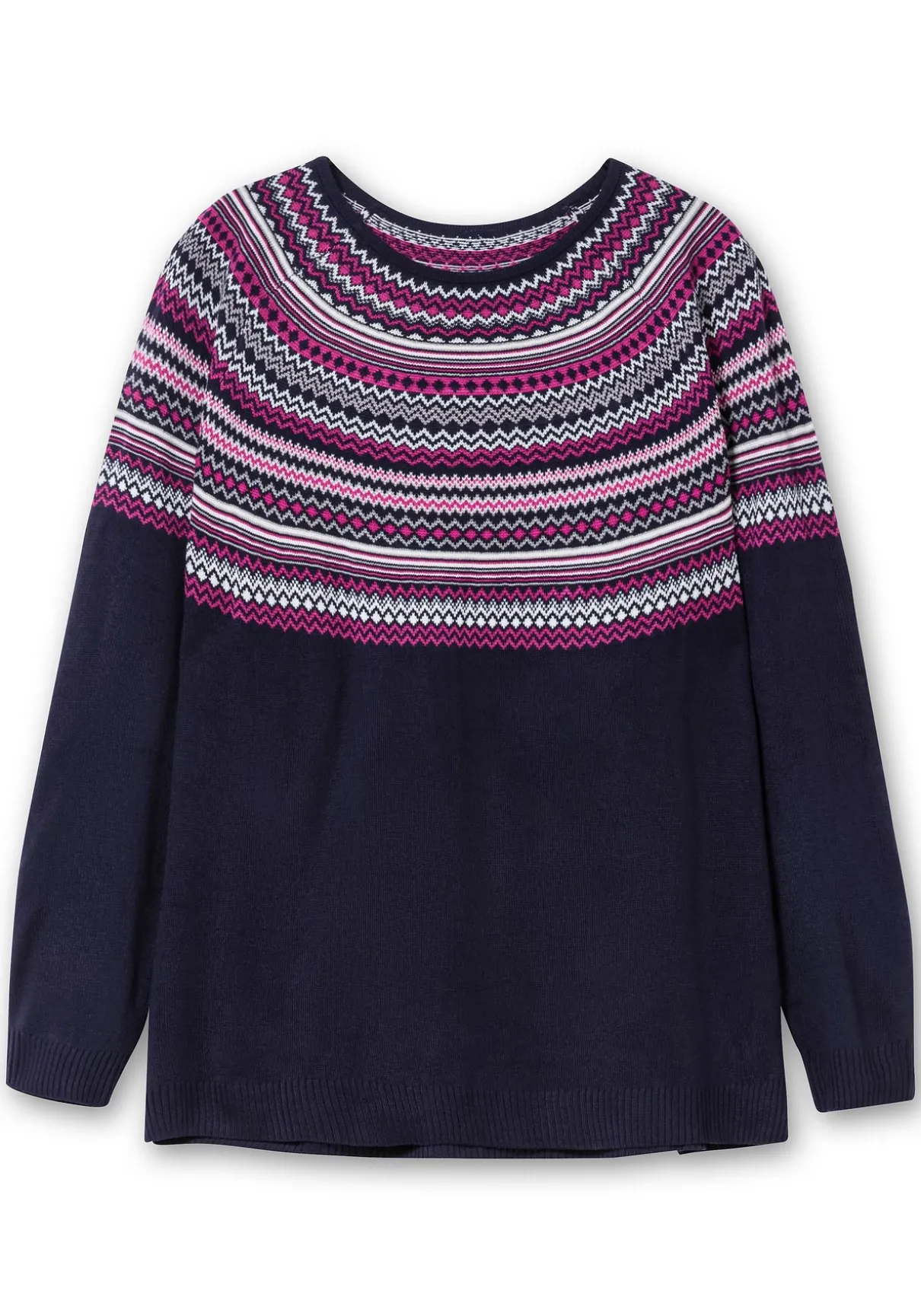 Norwegerpullover aus kuscheligem Strick. Das Jacquardmuster überzeugt mit seinem klassisch-winterlichen Look, dazu kommen ein Rundhalsausschnitt sowie gerippte Abschlüsse an Ärmeln und Saum.
