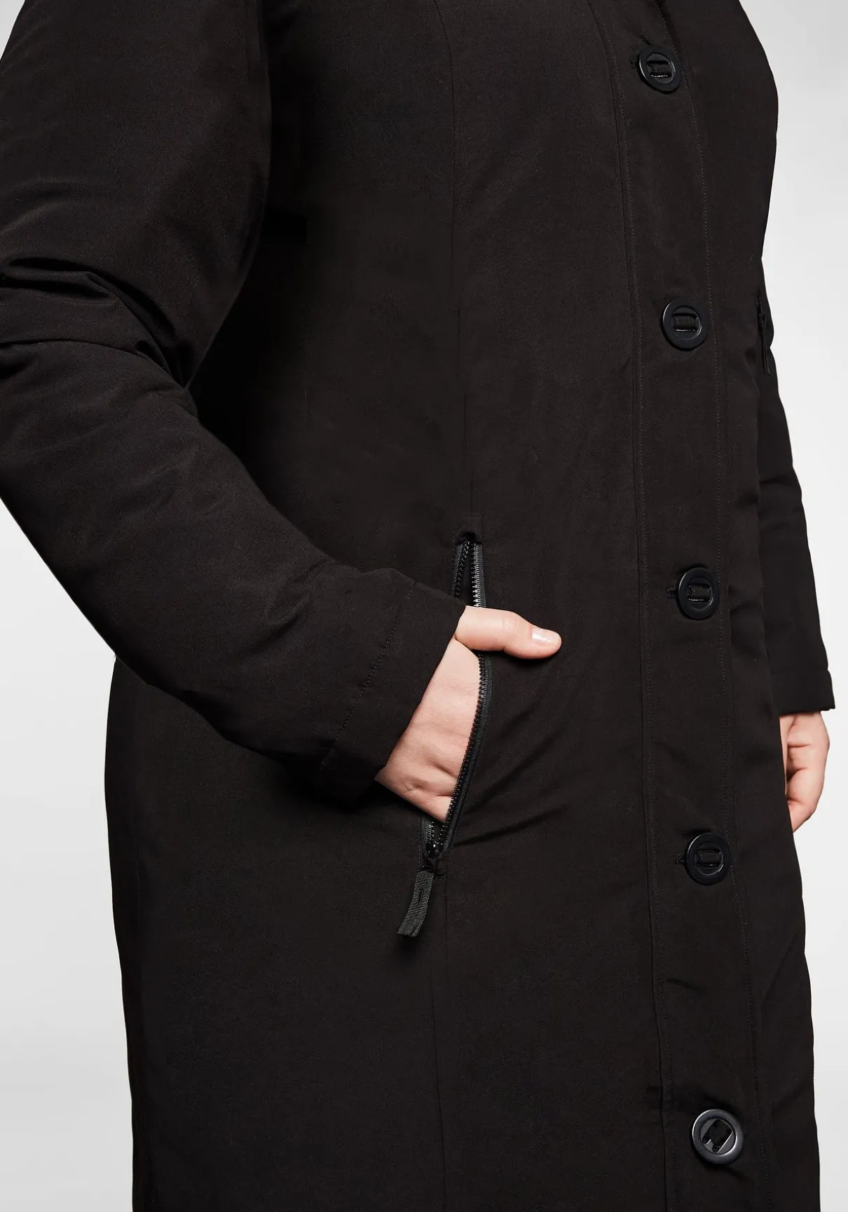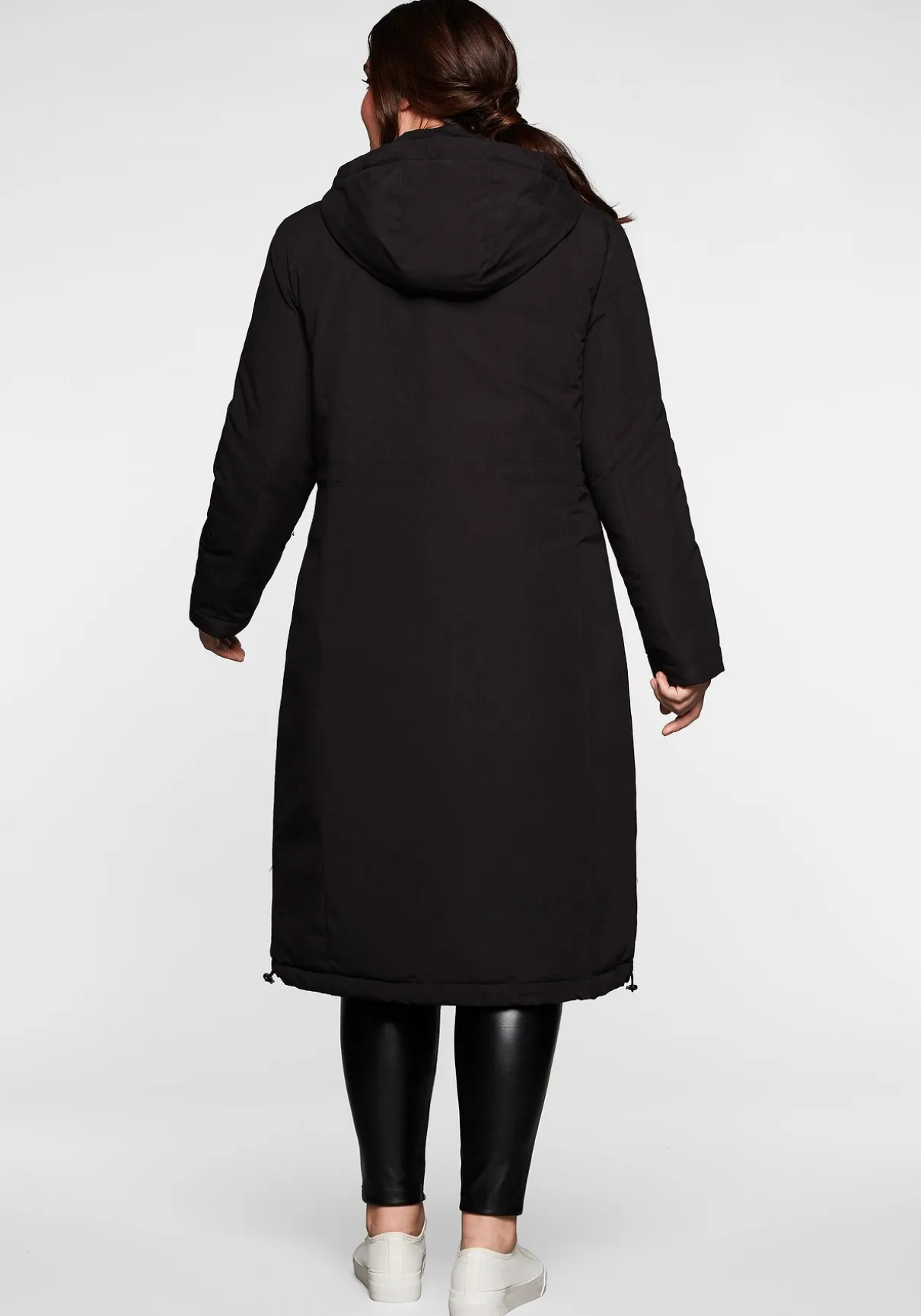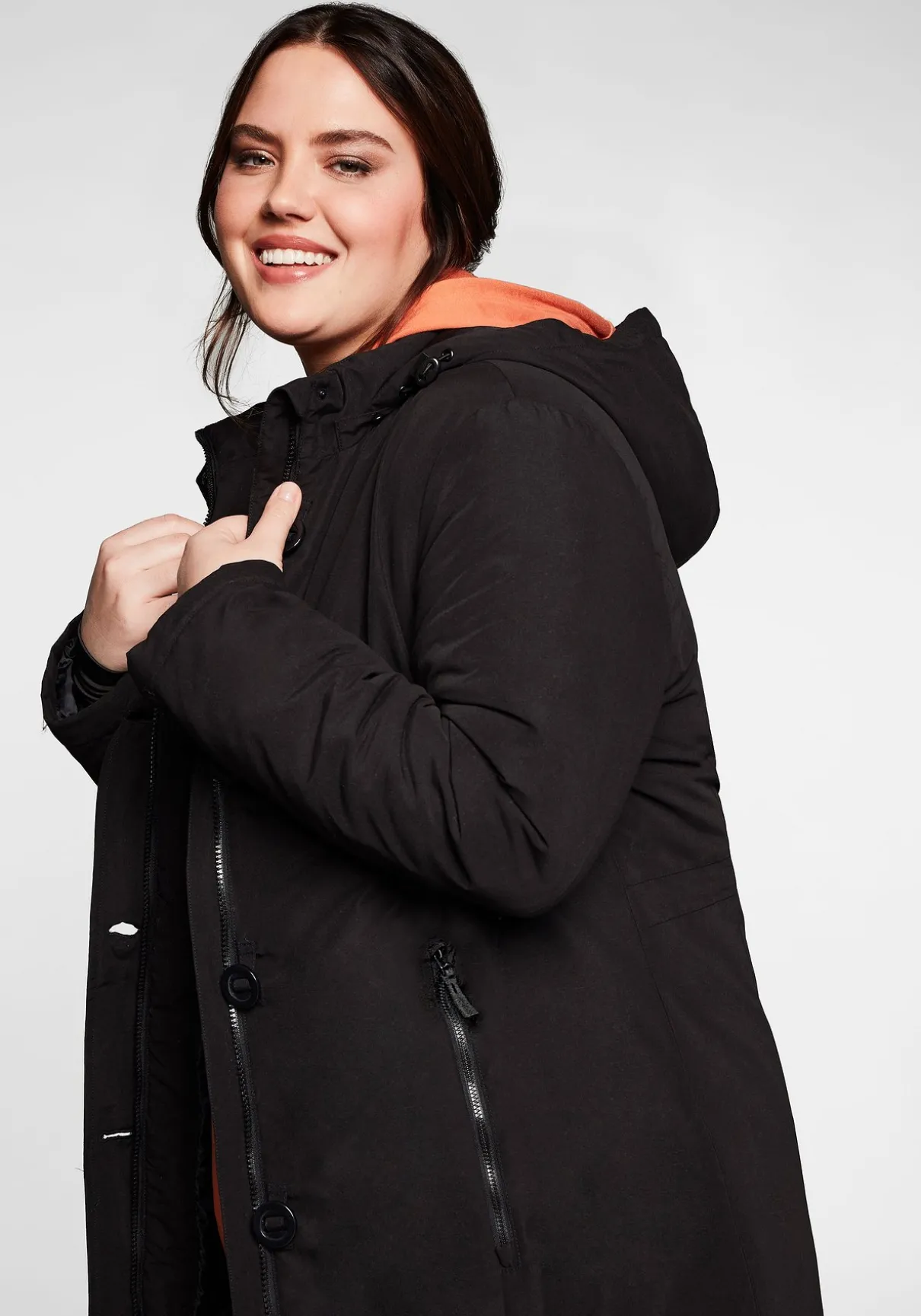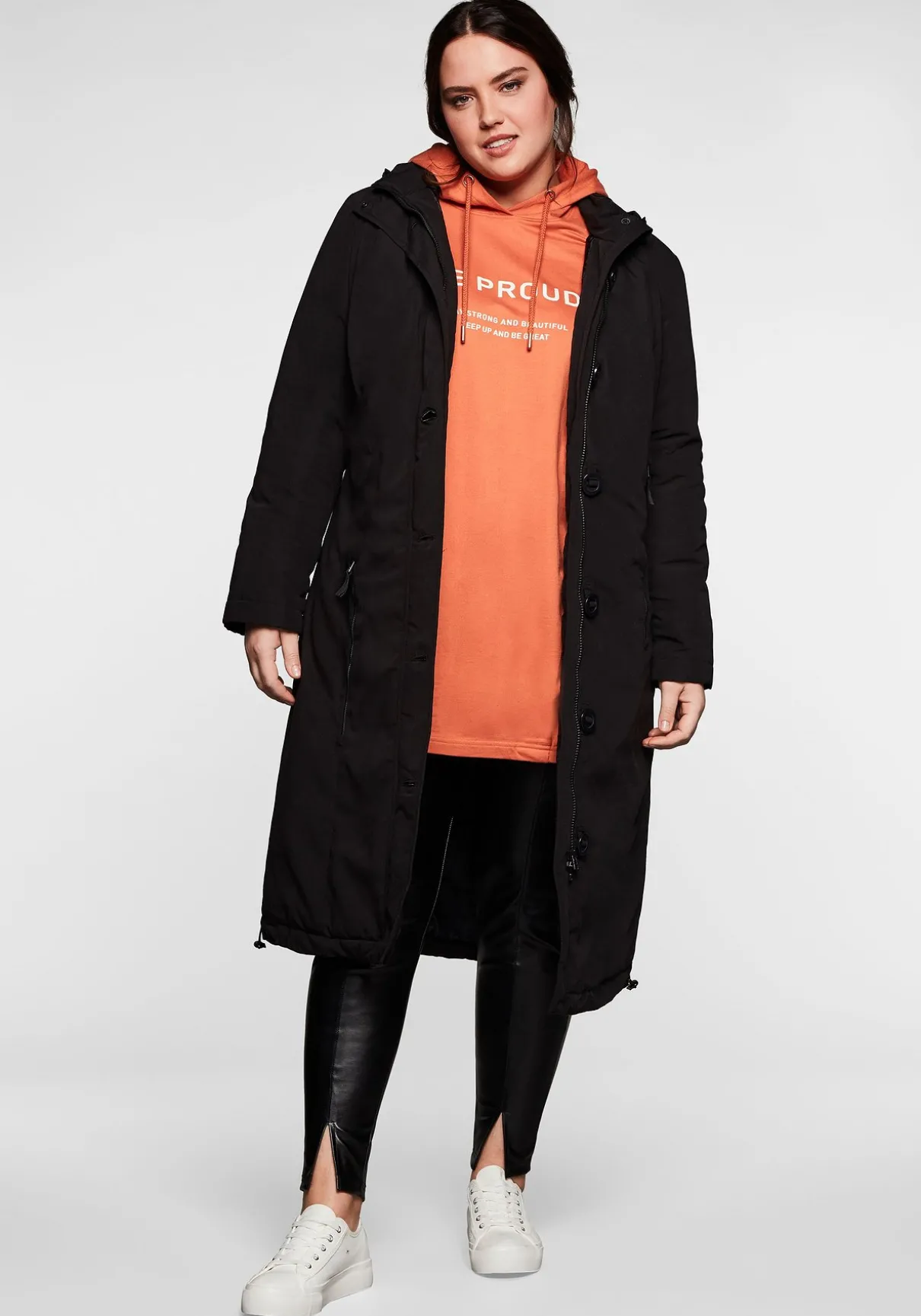Mantel mit Kapuze. Der robuste Style zeigt sich außen mit glatter Oberfläche, die Innenseite ist gesteppt. Durch den Tunnelzug in der Kapuze, die Rippbündchen am Ärmelabschluss und die mit langen, mit Zippern verschließbaren Taschen ist der Mantel der ideale Begleiter für alle Outdoor-Aktivitäten. Schließen lässt er sich mit einem verdeckten 2-Wege-Reißverschluss, die aufwendige Knopfleiste ist dazu eine dekorative Ergänzung.