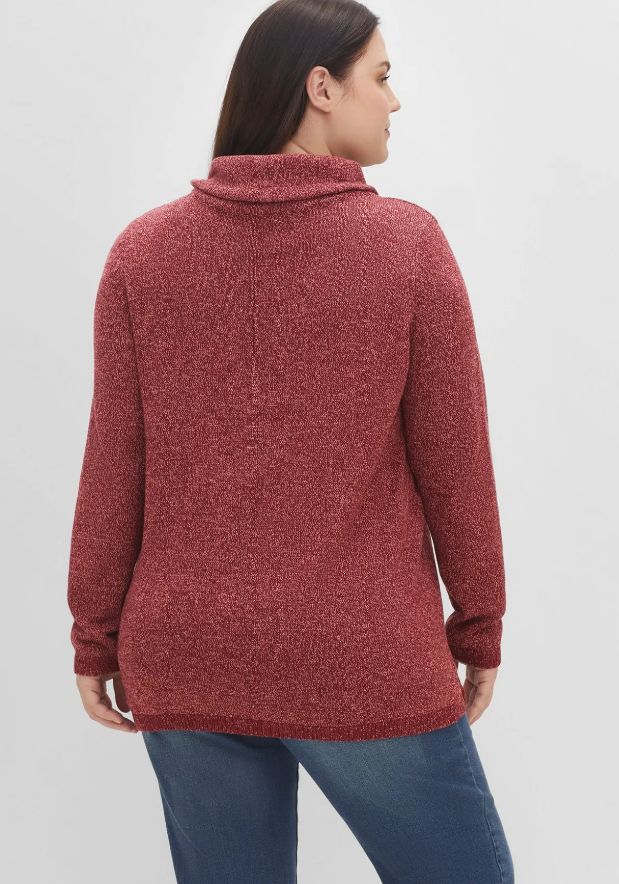 Pullover mit weitem Kragen und regulierbarem Tunnelzug. Die melierte Glattstrick-Qualität unterstreicht die sportive Optik. Dazu schließen die Ärmel und der Saum mit schmalen Rippbündchen ab, seitliche Schlitze am Saum sorgen für mehr Bewegungsfreiheit.