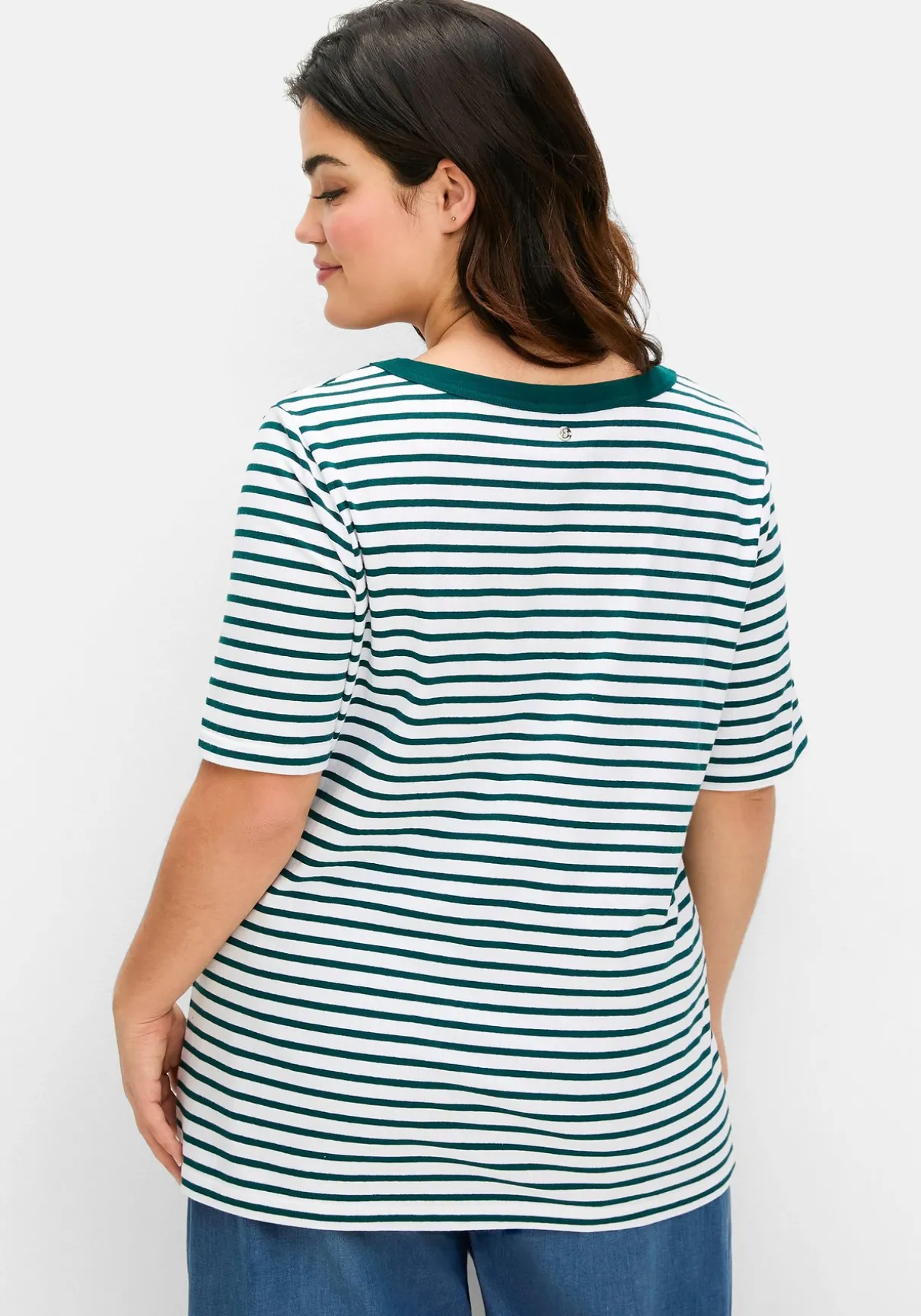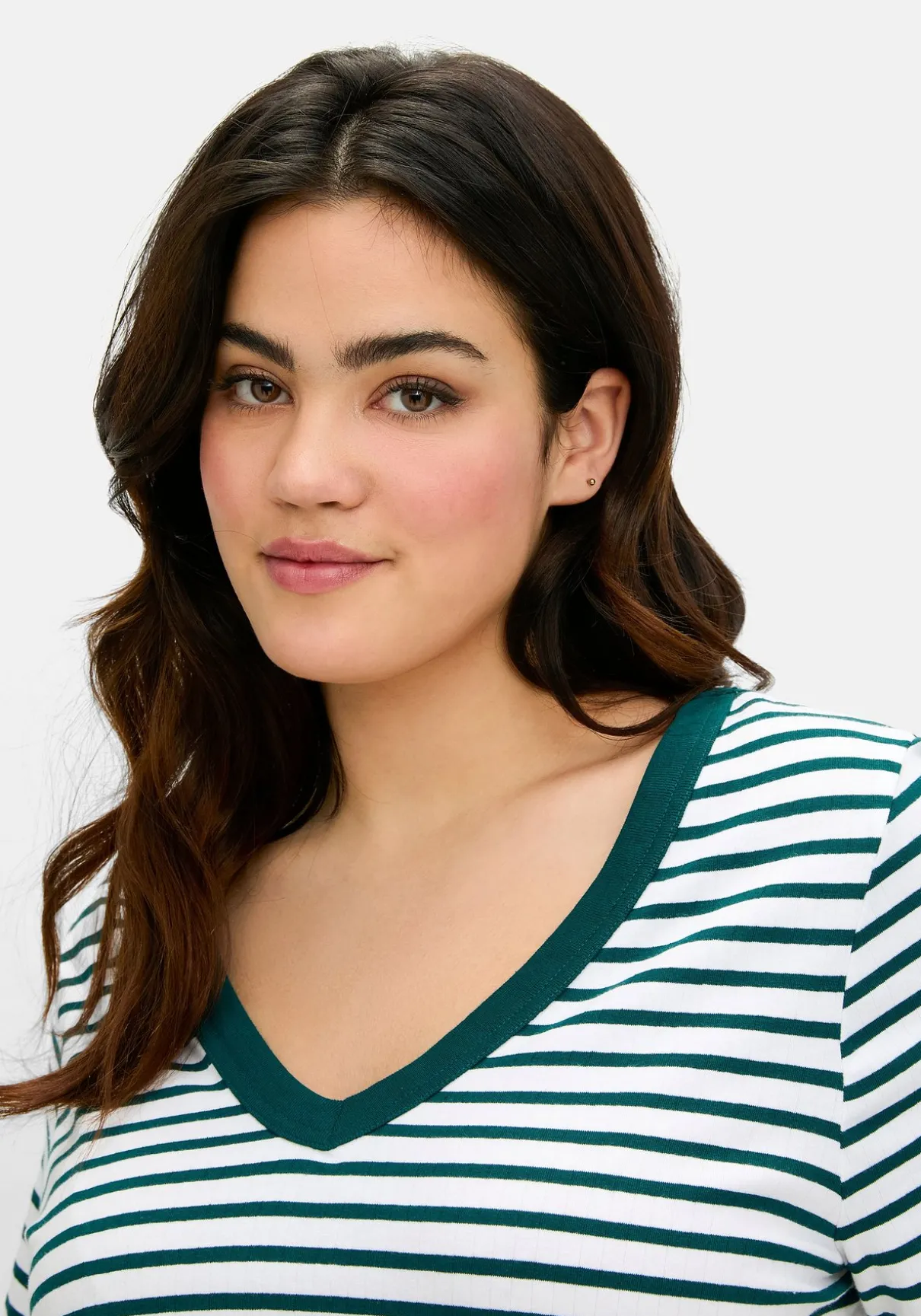 Shirt mit garngefärbten Ringeln. Der V-Ausschnitt wird durch die farblich abgesetzte Blende sportiv betont, die breit gerippte Struktur verleiht der Oberfläche Spannung. Ein etwas längerer Halbarm und die gerade Passform machen den Look komplett.