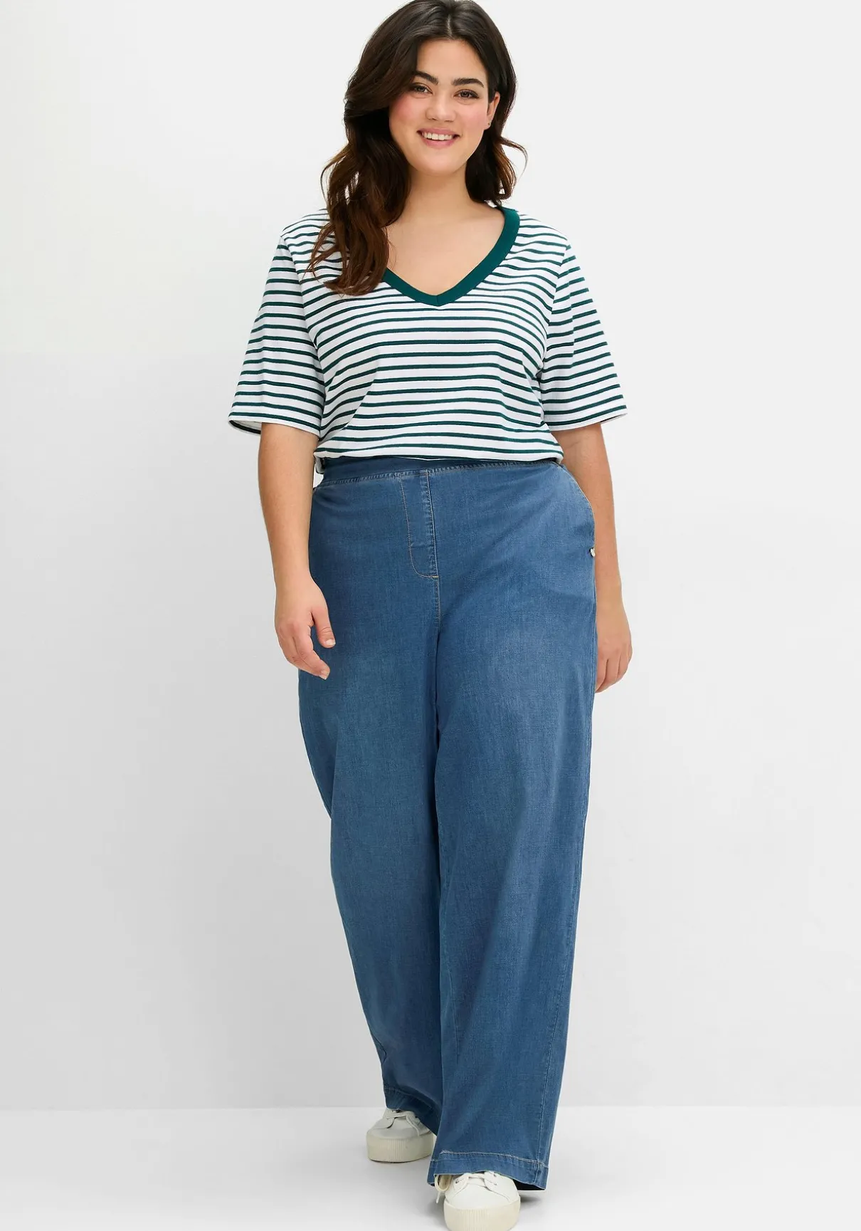 Das Shirt ist modisch breit gerippt und besteht aus elastischer Baumwollqualität – einem Material, das mit einer sehr angenehmen Haptik überzeugt und durch den Stretchanteil besonders bequem sitzt.
