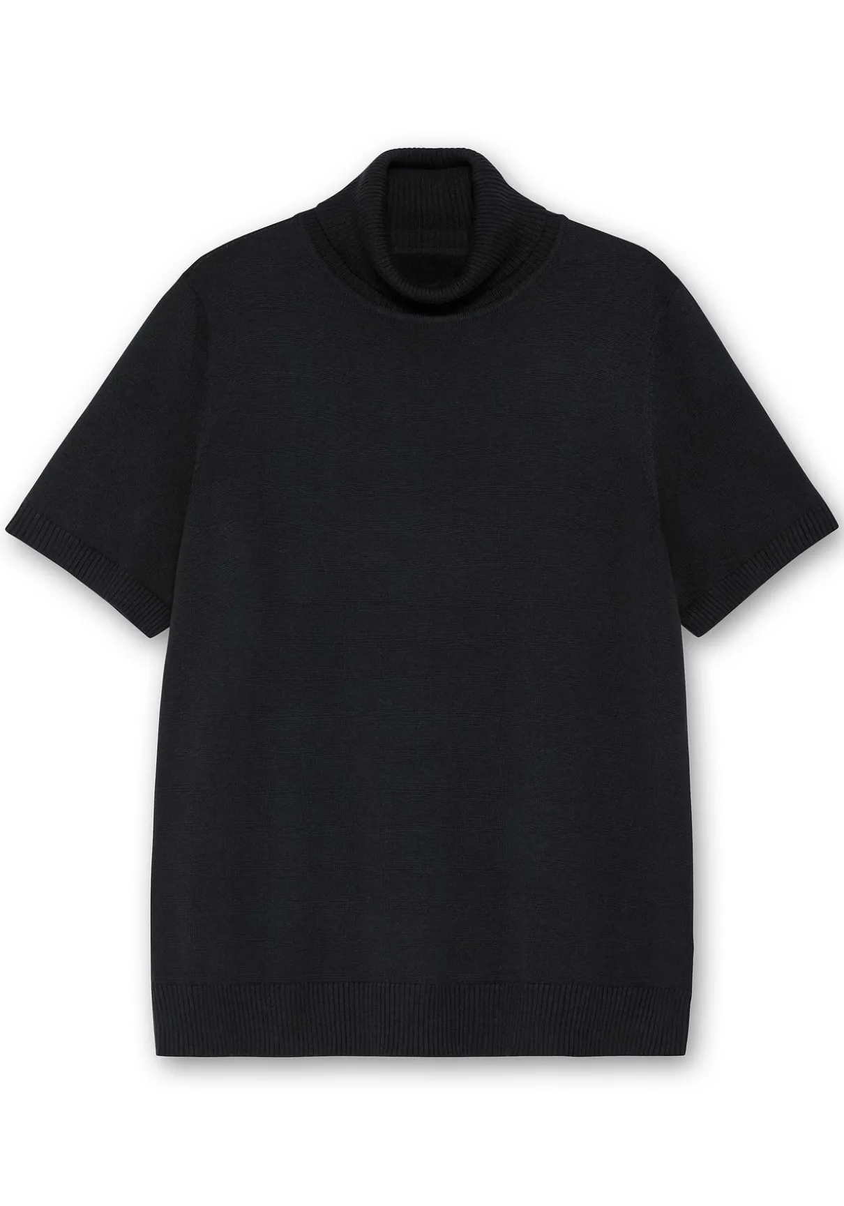 Rollkragenpullover mit kurzen Ärmeln. Das Oberteil besticht durch seine klassisch-schlichte Form und ist ein unverzichtbares Basic für Drunter und Drüber – perfekt auch für den Business-Style. Gerippte Abschlüsse runden den Look lässig ab.